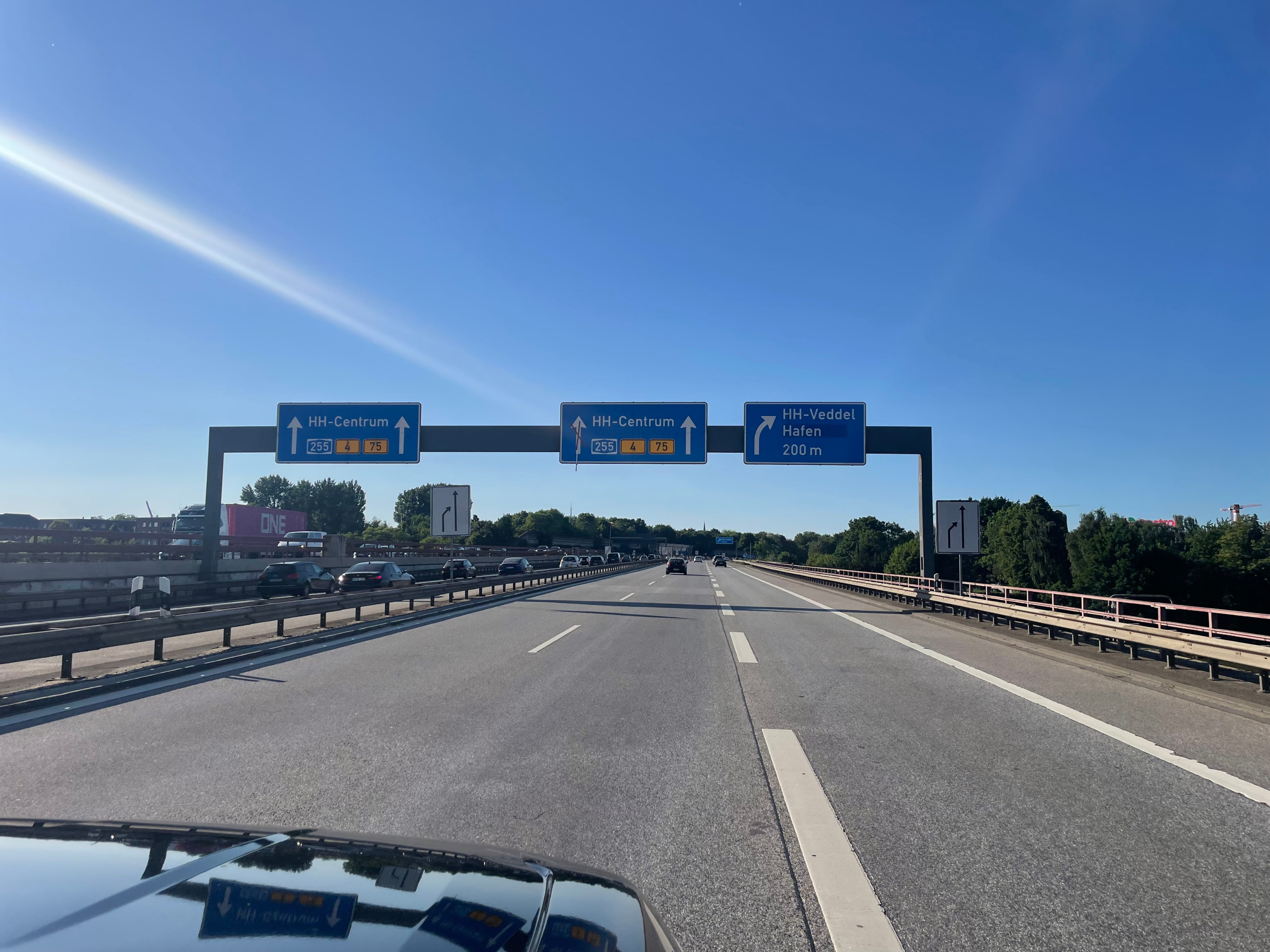 Am nächsten Tag geht´s weiter Richtung Hambug. Bis auf einen einzigen dafür nervigen Stau läuft es eigentlich super wäre da nicht das Schnarchtempo von 80 km/h dank unserem Anhänger (Ok , wir gebens zu ...manchmal .. sogut wie nie!... auch ein ganz kleines bisschen schneller ;-))
