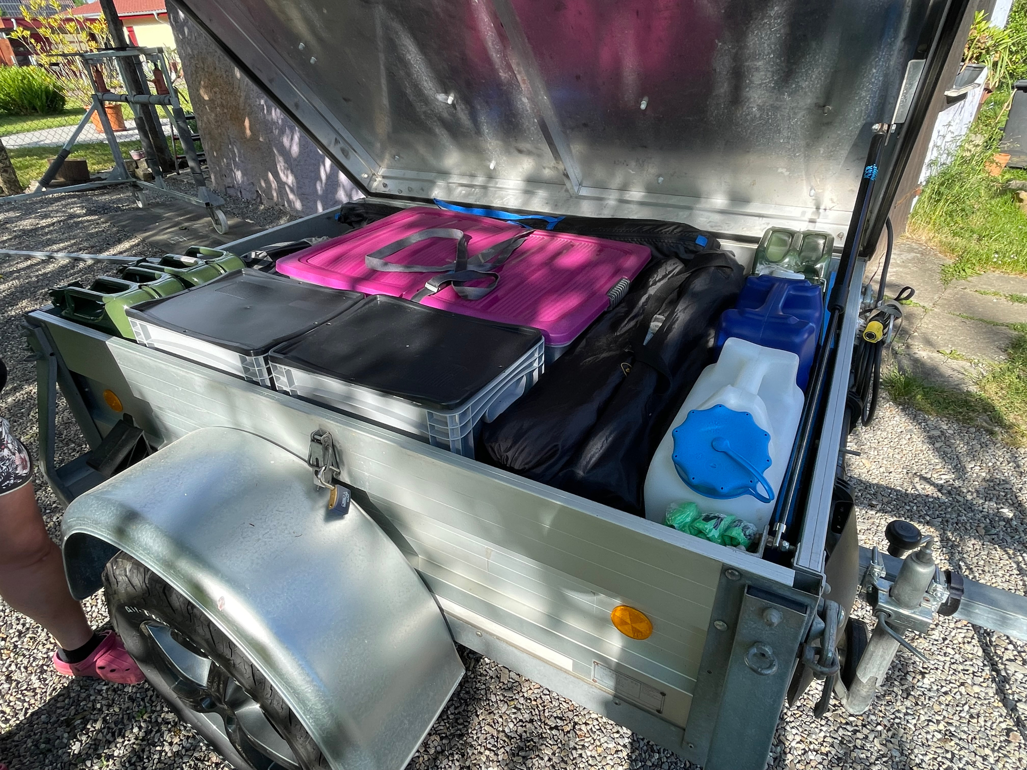Das Anhänger-Tetris ist vollendet und die Kabine ist vollbeladen.