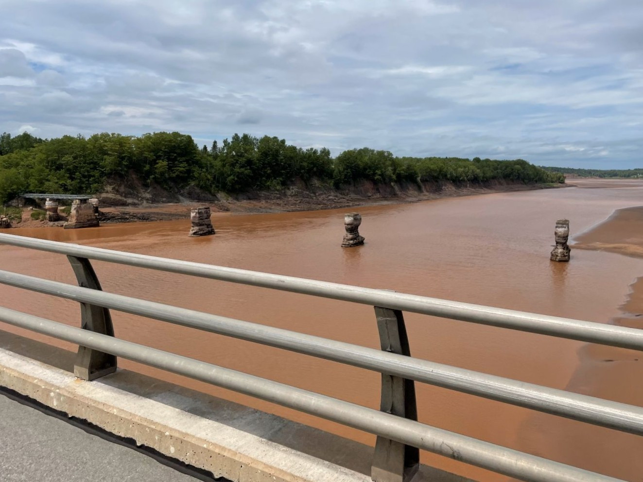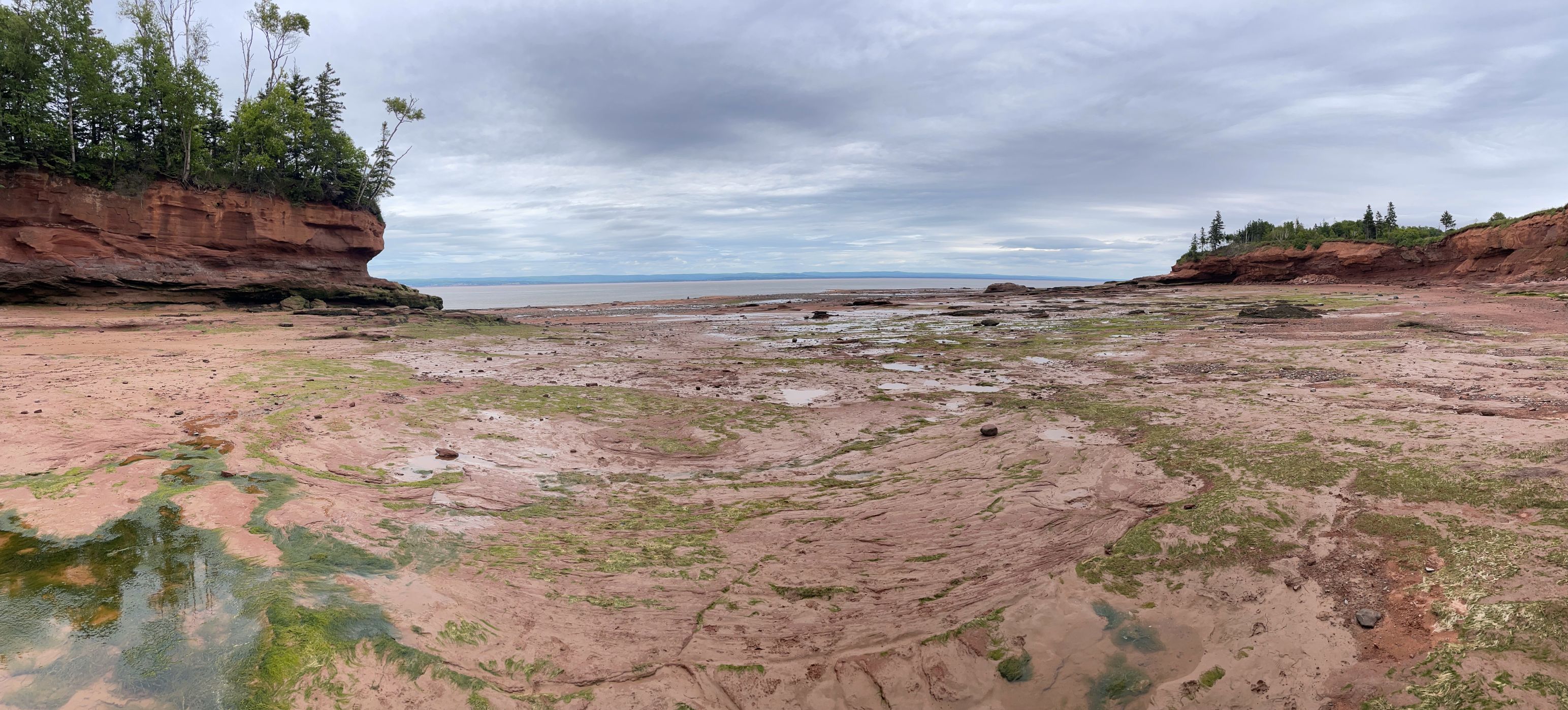 Weiter gehts auf dem TCH und auf dem Highway 215 zum Burntcoat Head an der Fundy-Bucht. An diese Stelle sind die höchsten Gezeitenunterschiede jemals auf der Welt gemessen worden (im Jahr 1869 21,3m ansonsten im Schnitt 17m Unterschied zwischen Ebbe und Flut).