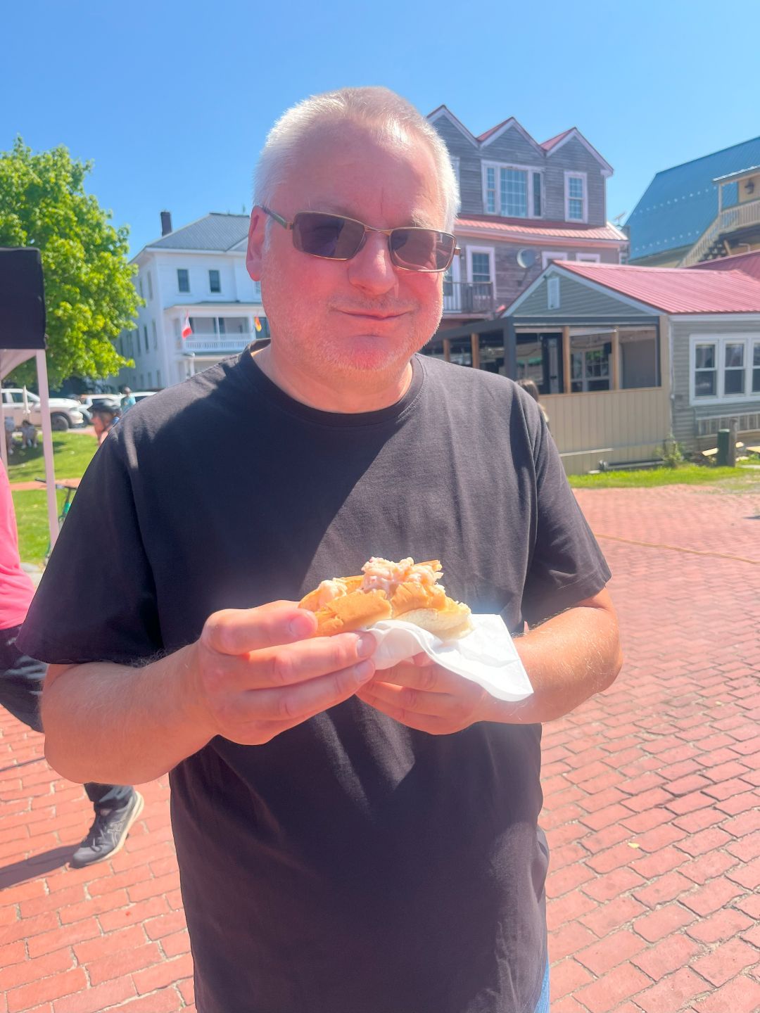 Eine lange Schlange steht vor dem Verkaufsstand mit Lobster Rolls 🦞.