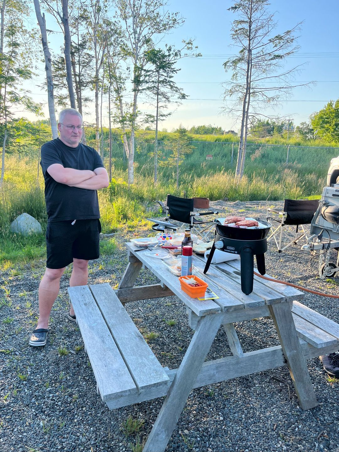 Abends gibt's Burger. Die Freude darüber schwindet schnell aufgrund der mangelhaften Burgerpatties. Aus denen läuft nicht nur massenweise Flüssigkeit (Wasser?) aus, sondern sie zerfahren auch. Die Dinger hinterlassen eine riesen Sauerei auf (und neben) dem Grill. Ich bekomm schlechte Laune😕