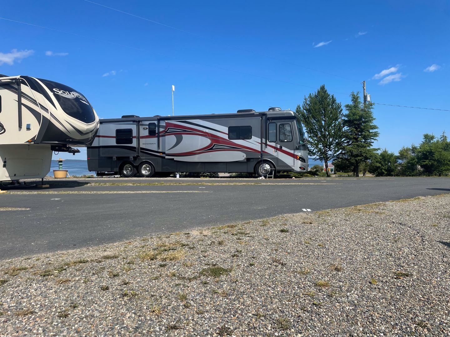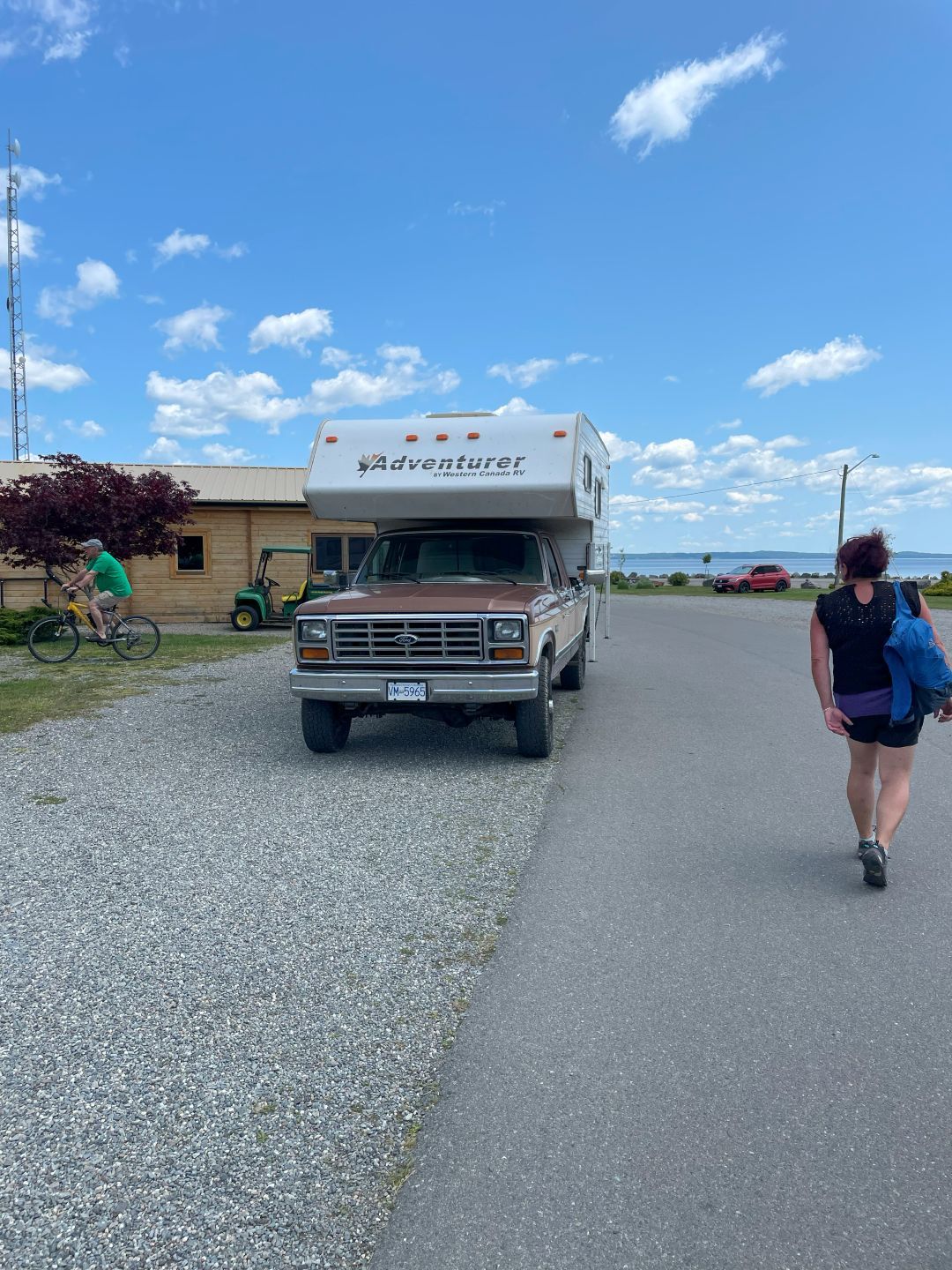 Ein Nachbar kommt vorbei und fragt ob er sein Fahrzeug bei uns nebendran abstellen darf, damit die Kinder spielen können. Kunzi stimmt ein bisschen zu voreilig zu. Jetzt haben wir noch einen riesigen Pickup bei uns der noch mehr die Sicht aufs Wasser versperrt. Dafür werden wir abends zum „Campfire" eingeladen.
