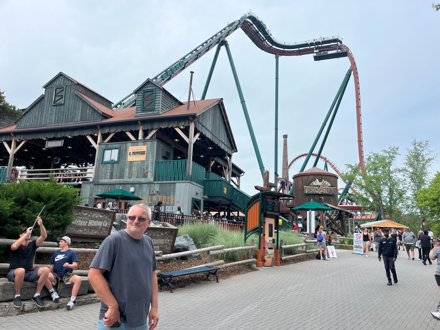 Jetzt geht's zum „Yukon Striker". Hier gehts erstmal richtig hoch... und dann senkrecht runter ...wenn man ganze vorne sitzt, wie ich, hängt man noch ein paar Sekunden nach unten in den Abgrund bevor es nahezu im freien Fall in ein Loch im Boden geht.