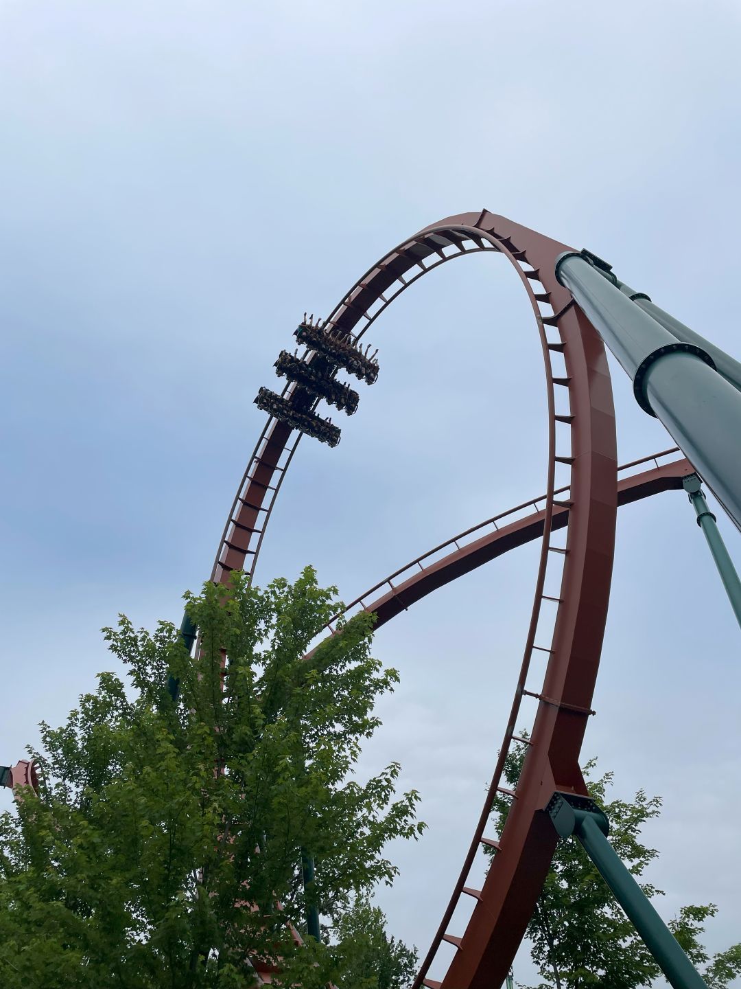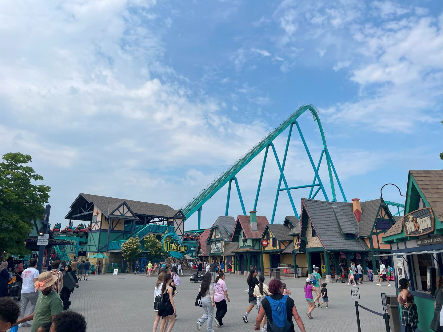 Ich fahr noch die „Leviathan", das müsste die größte Bahn im Park sein, aber das flaue Gefühl im Magen wird nicht mehr besser.
