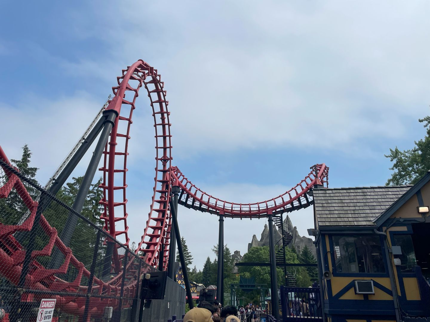 Man wird rückwärts hochgezogen, dann gehts vorwärts durch Schrauben und Looping auf der anderen Seite hoch. Jetzt das ganz rückwärts *örgs*. Das „Rückwärts" geht direkt in den Magen ...mir wird schlecht🥴