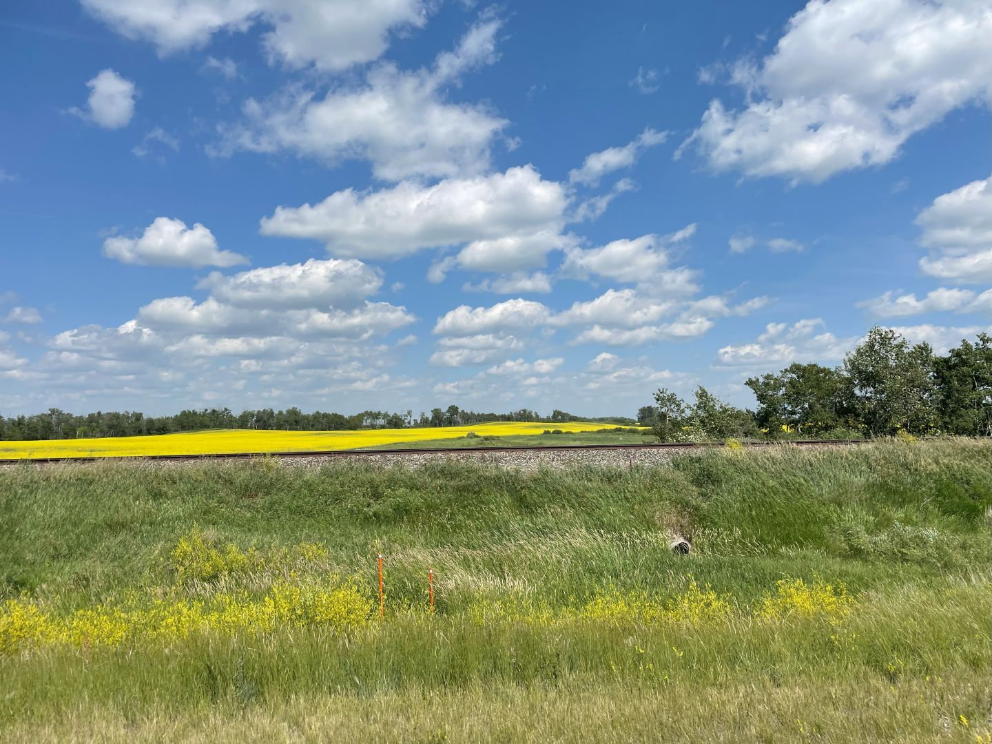 Wir fahren auf dem TCH weiter und wechseln dann irgendwann auf den Highway 6 über Mellfort in Richtung Prince Albert (Stadt). Wie schon in Manitoba beherrschen hier riesengroße Rapsfelder das flache Land. Alles gelb soweit das Auge blicken kann. Kanada ist neben der EU der größte Raps-Produzent der Welt. Die Hauptabnehmer sind China (für Speiseöl und Tierfutter) und die USA (für Kraftstoff). Der Markt gerät aber im Zuge der Handelskonflikte unter Druck ...so gibts aus China wohl für Kanada inzwischen 100% Strafzölle. Die Farmer weichen teilweise wieder auf Weizen aus. Sonst wäre hier wohl alles gelb und garnichts mehr Grün😜