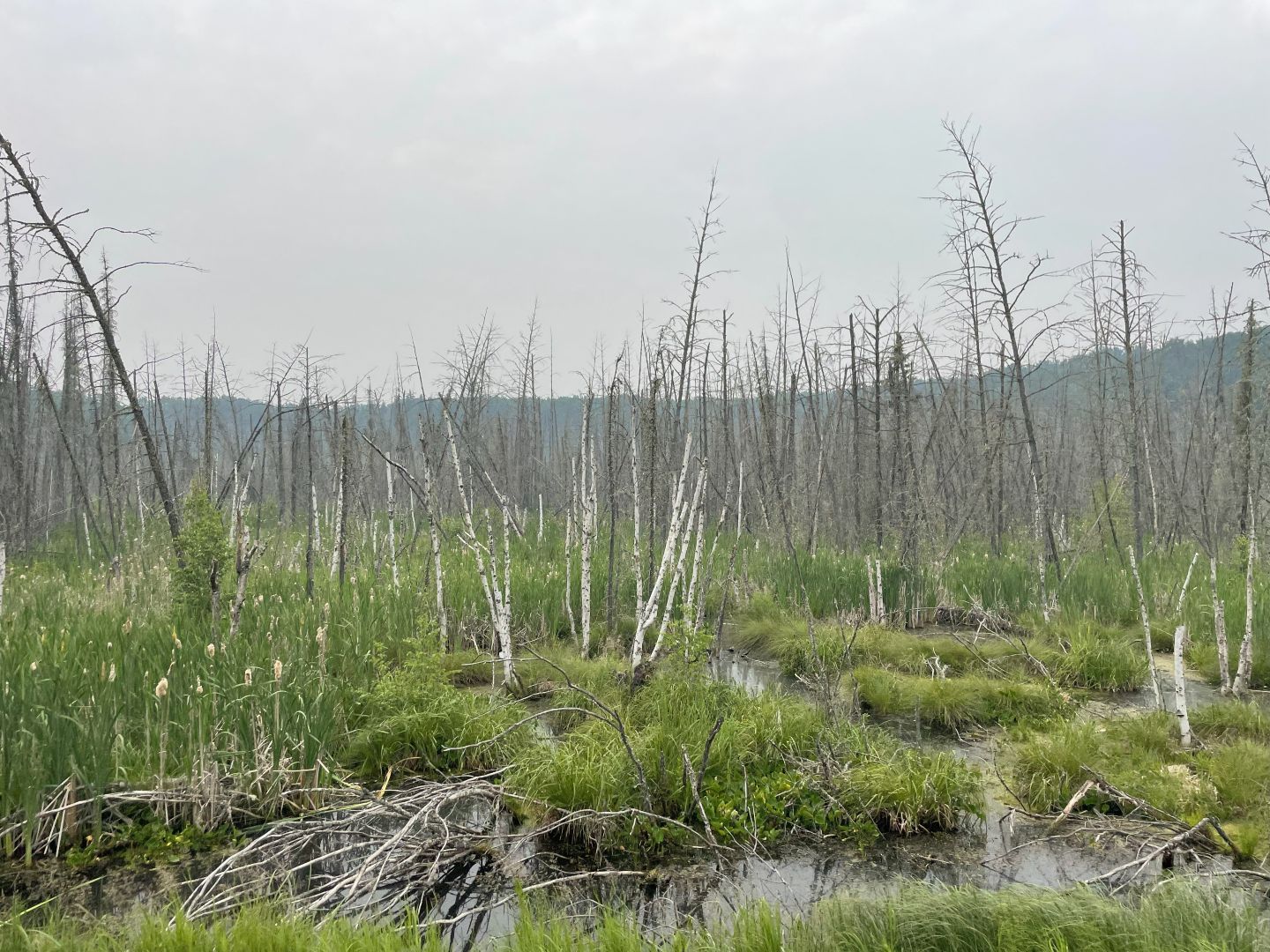 Wir starten nochmal einen Versuch ein Trail zu laufen. Der Mud Creek Trail ist kurz (2km) und klingt ganz nett. Im Frühling springen aus dem Fluss wohl Fische und Schwarzbären machen Jagd auf diese.