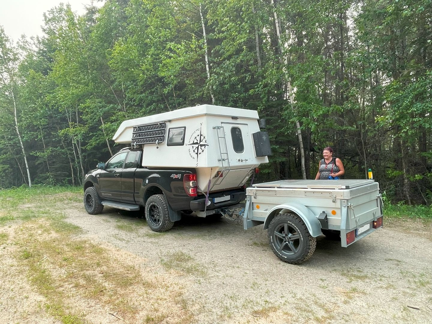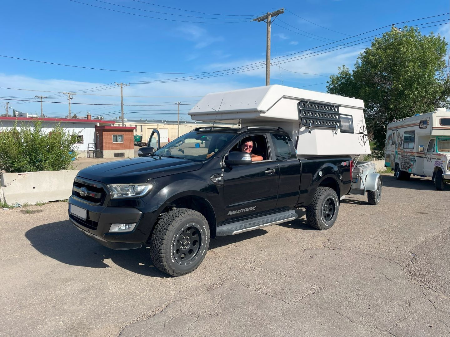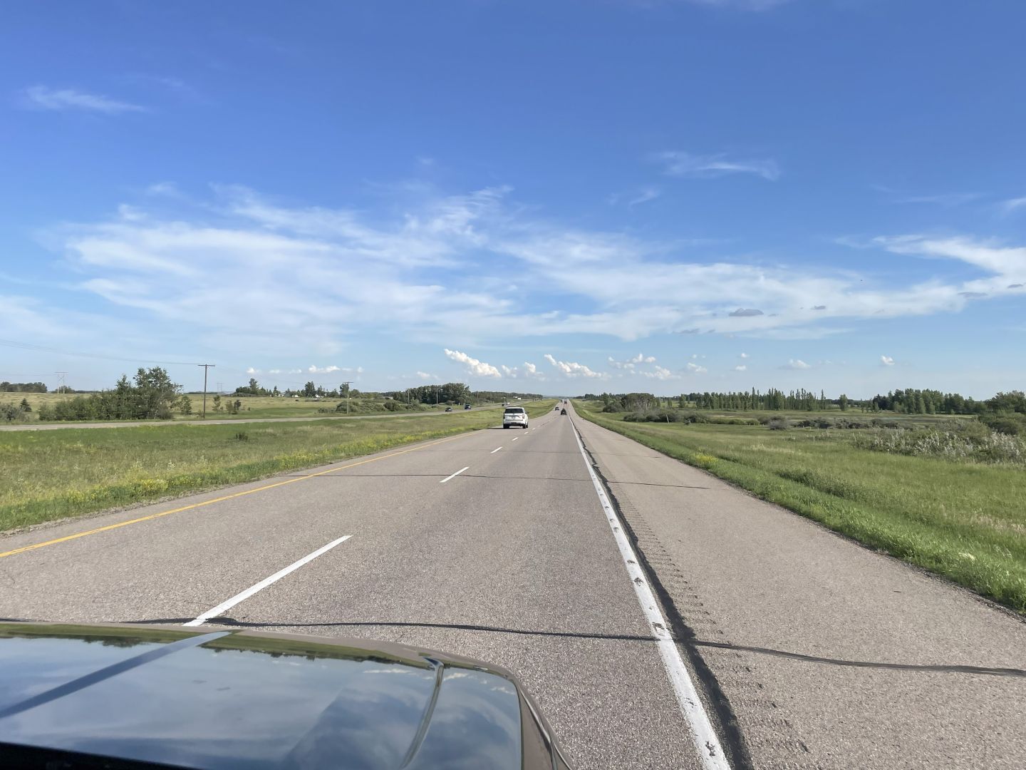 Auf der einen Seite sehen wir in die Weite der Prärie, auf der andern können wir Truck-Viewing machen😜