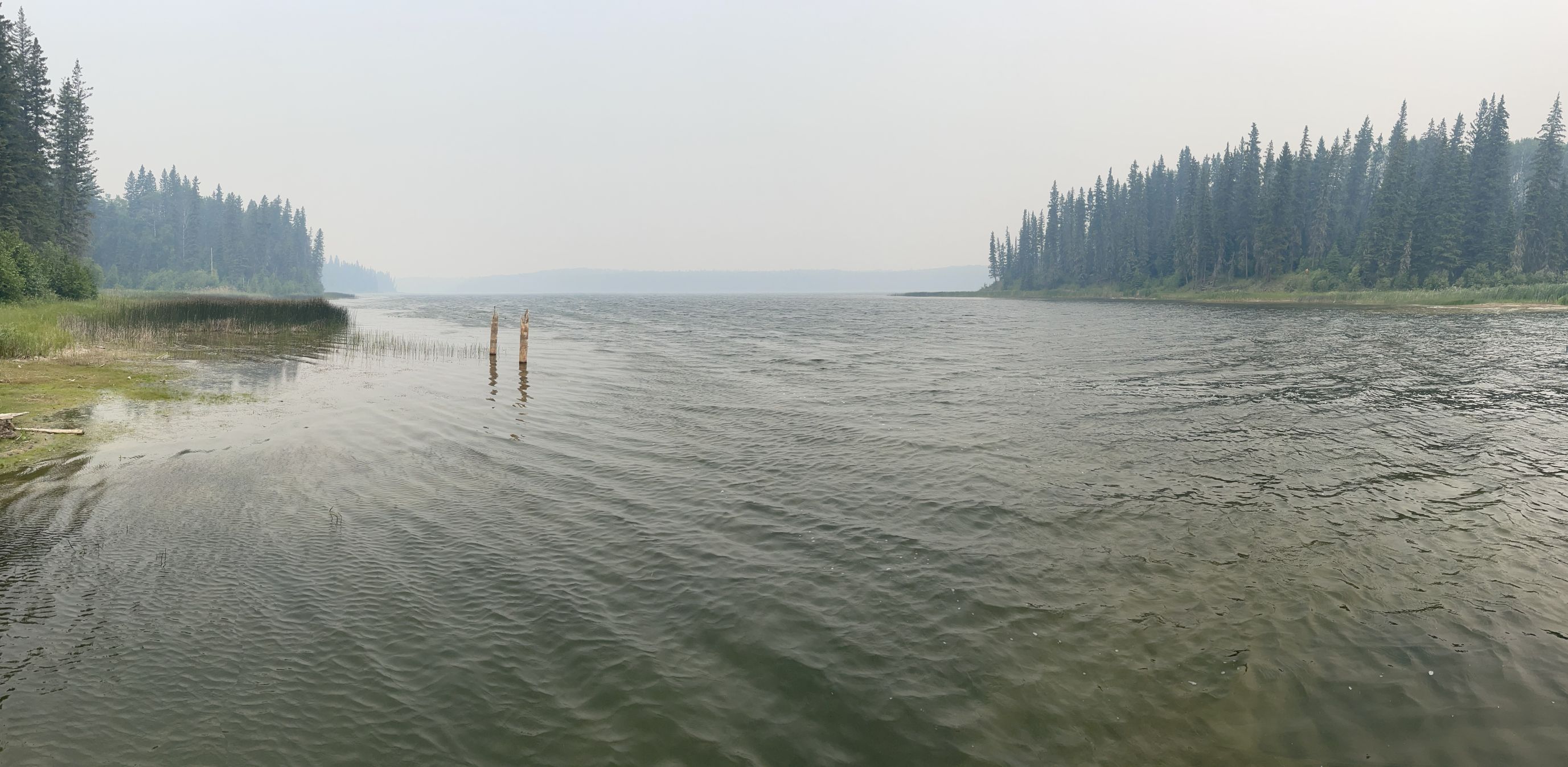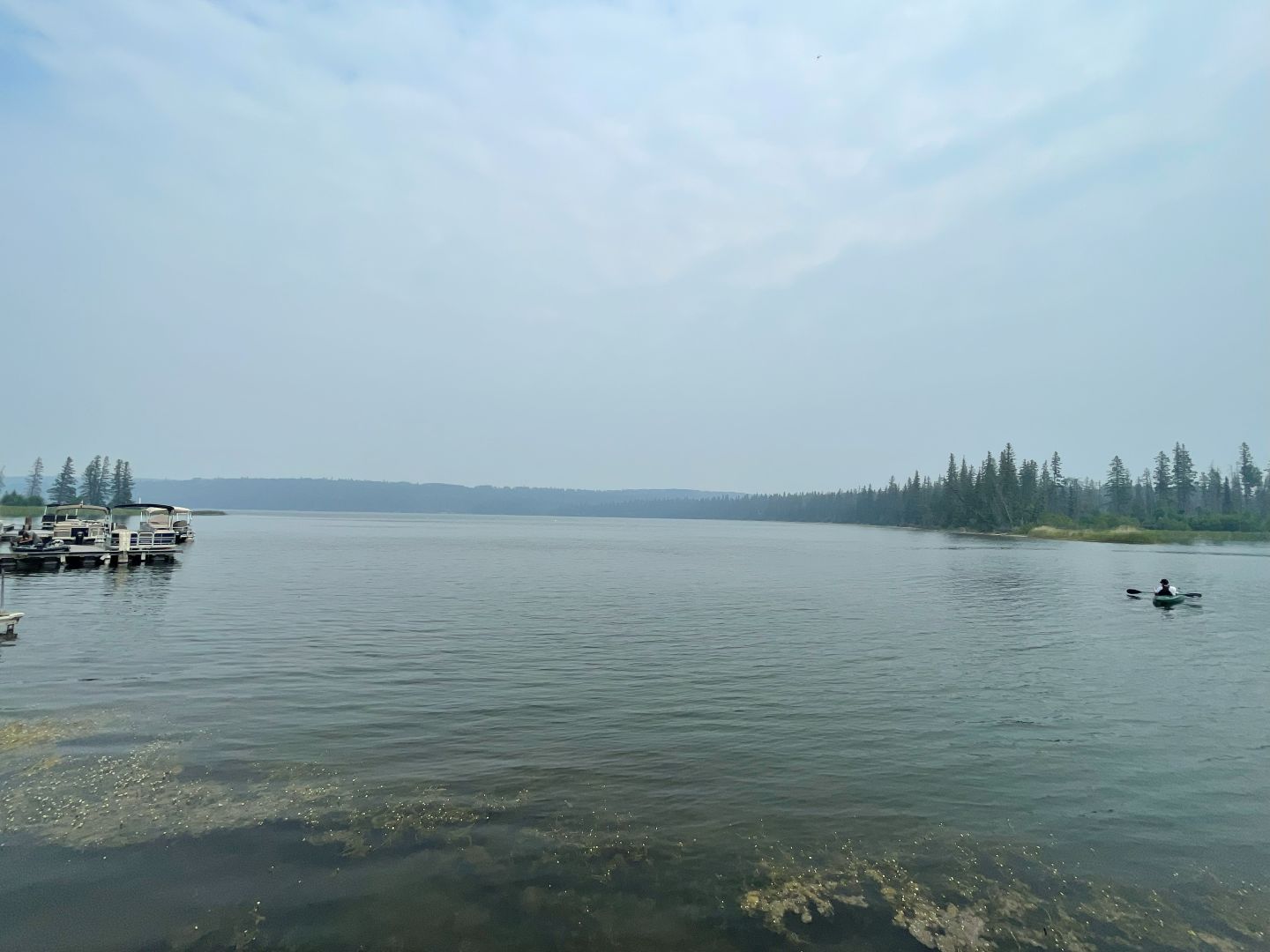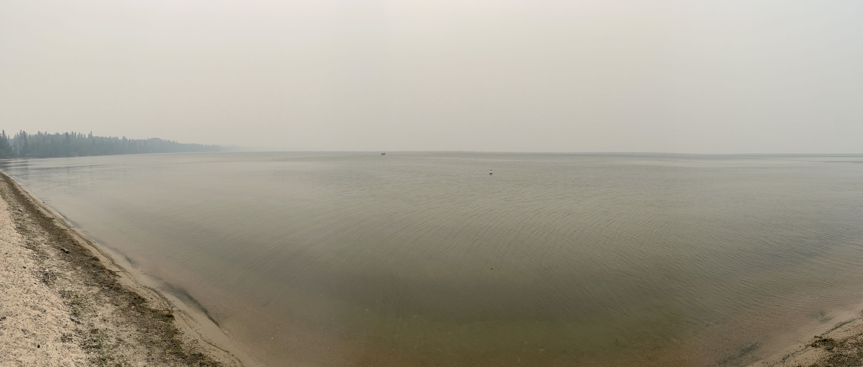 Der Rauch ist hier auch so dicht, dass man das andere Ufer des Sees kaum noch erkennen kann.