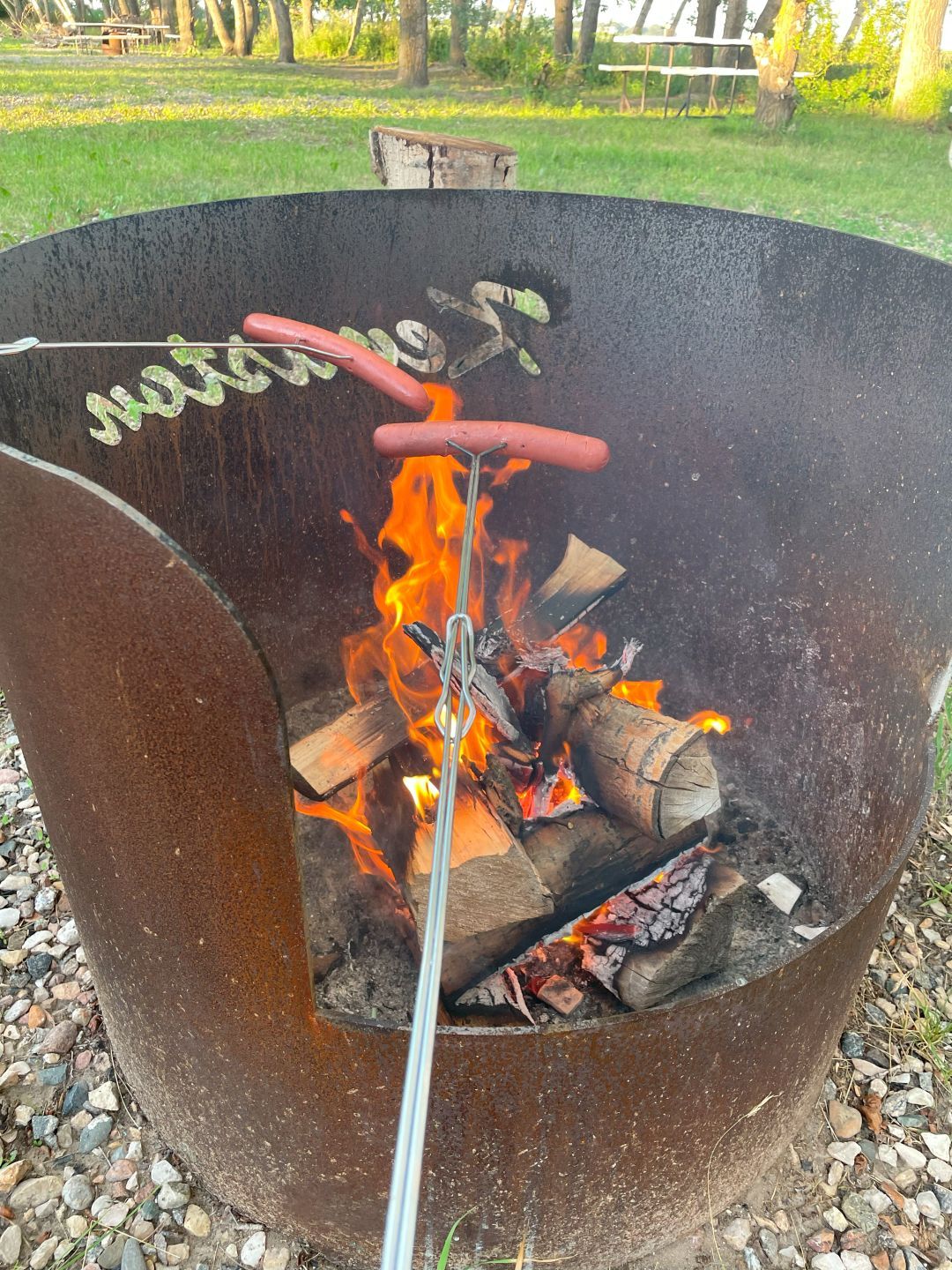 Zum Essen gibt's dann auch wieder Würstel überm Lagerfeuer gegrillt.