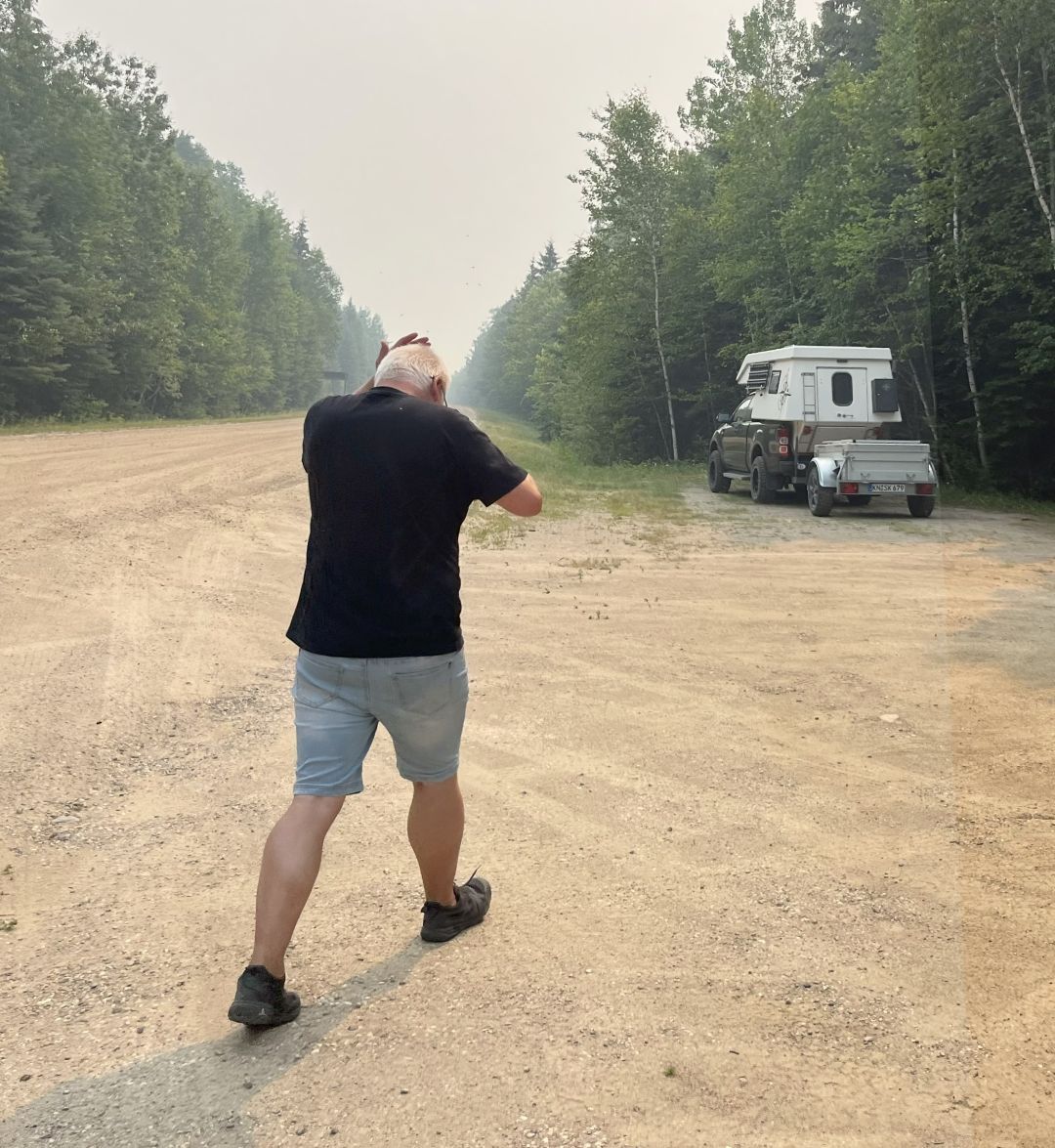 Wir fahren die Kingsmere Road bis zu dem Punkt an dem sie gesperrt wurde und wollen den Narrows Peninsula Trail laufen. Der ist so 3,5 km lang und führt über eine kleine Landzunge im Waskesiu-See. Wir haben noch nicht mal richtig angehalten da werden wir schon von den ersten Bremsen begrüßt. Wir versuchen's trotzdem. Eingesprüht mit Mückenschutz (mit 27% DEET!-Anteil, Autan kannst hier vergessen) laufen wir los aber kommen keine 200m weit. Dann wirds mit Fliegen, Mücken, Bremsen und keine Ahnung was noch alles, so schlimm, dass es unerträglich ist. Wir flüchten zurück ins Auto und sind erstmal beschäftigt alles platt zu hauen, was es mit ins Fahrzeug geschafft hat.