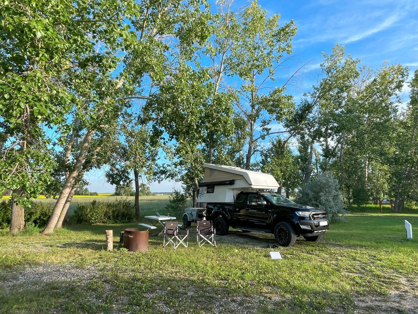 So 70-80 km hinter Saskatoon, bei Kenaston gehen wir auf einen kleinen Gemeindepark mit Camping namens „Bonnigton Springs".