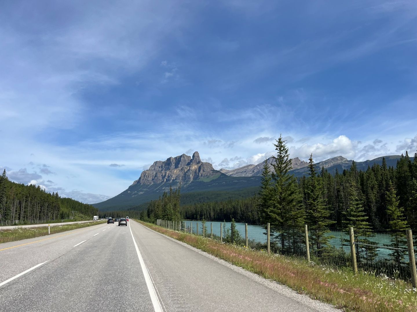 Wir fahren auf dem Bow Valley Parkway wieder zurück ...der ist auch mehr Schein als Sein. Viel Wald links und rechts, und wenn man mal was sieht liegts eher daran, dass der Wald durch Brand fehlt🙄