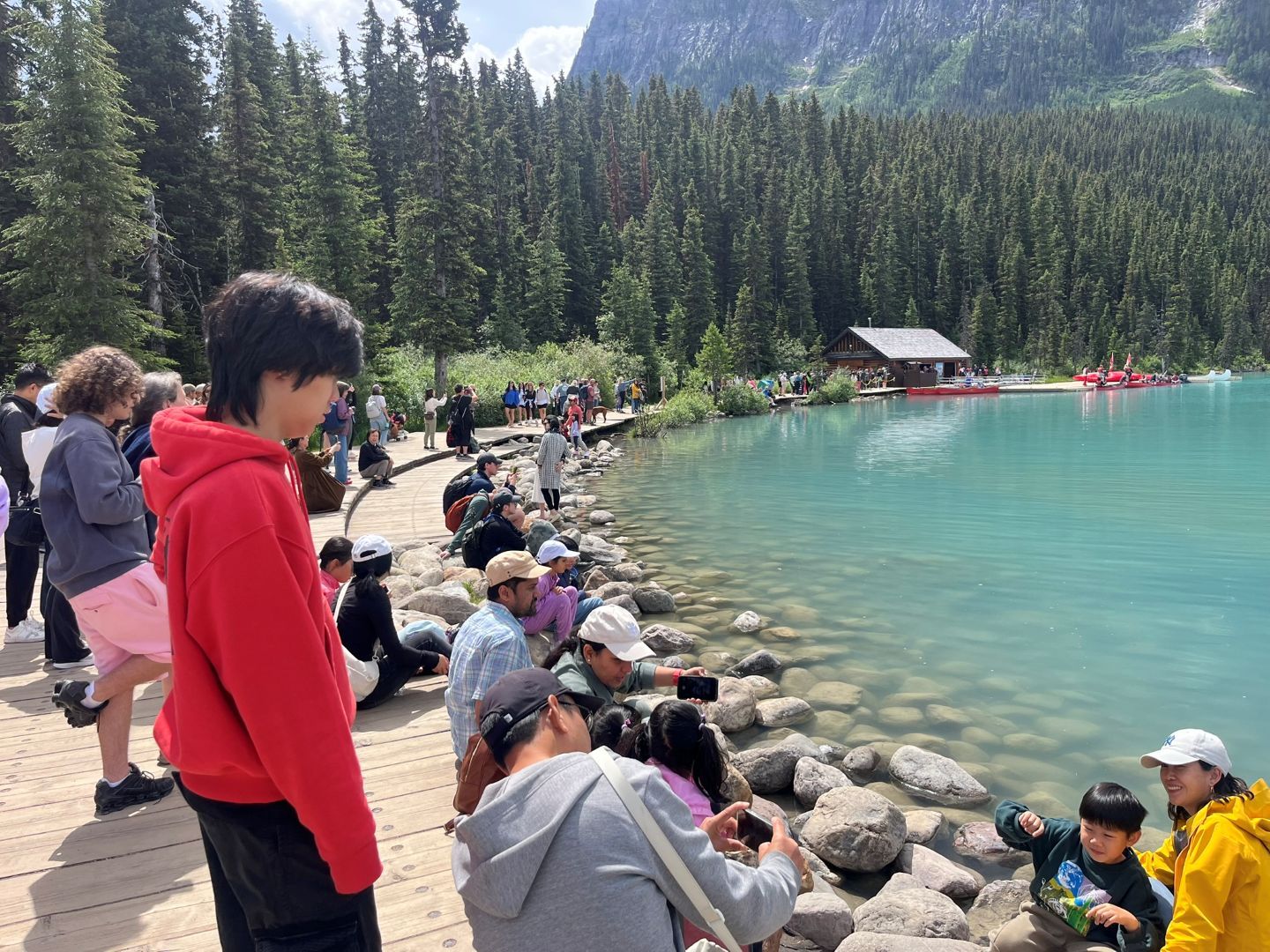 Man könnte den See bepaddeln ...das ist auch sicher 100mal besser als den überfüllten Weg am Ufer langzuwandern, aber die Schlange am Kanu-Verleih ist ewig lang und diejenigen, die ihr eigenes Schlauchboot, Standup-Board oder Schlauchkajak mitgebrachten haben müssen das auf dem Weg zwischen 100000 Touris auf & abbauen. Neeee danke ...das muss man sich nicht antun.