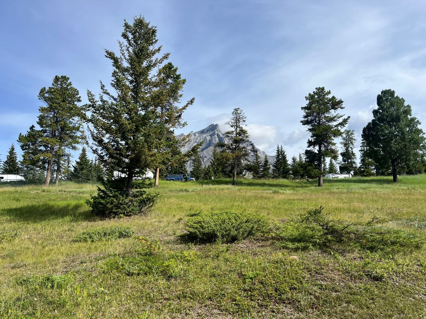 In der Früh suchen wir erstmal einen Platz für die Nächste Nacht. Um reservieren zu können, darf man erstmal bei Parks Canada einen Account anlegen. Wie wir feststellen müssen gibt im ganzen Banff NP so gut wie keine Plätze mehr. So sind die 3 Camping mit 1200 Plätze z.B. beim Ort Banff selbst auch komplett voll😮. Selbst auf den Backcountry Plätzen (nur mit Zelt und per Wanderung erreichbar) ist fast alles ausgebucht. Auf einem Platz in der Nähe des Lake Minnewanka gibts noch 3 Plätze ...schnell einen buchen auch wenn der Platz mitten im Wald liegt.