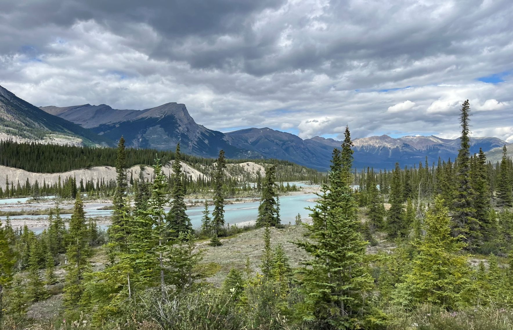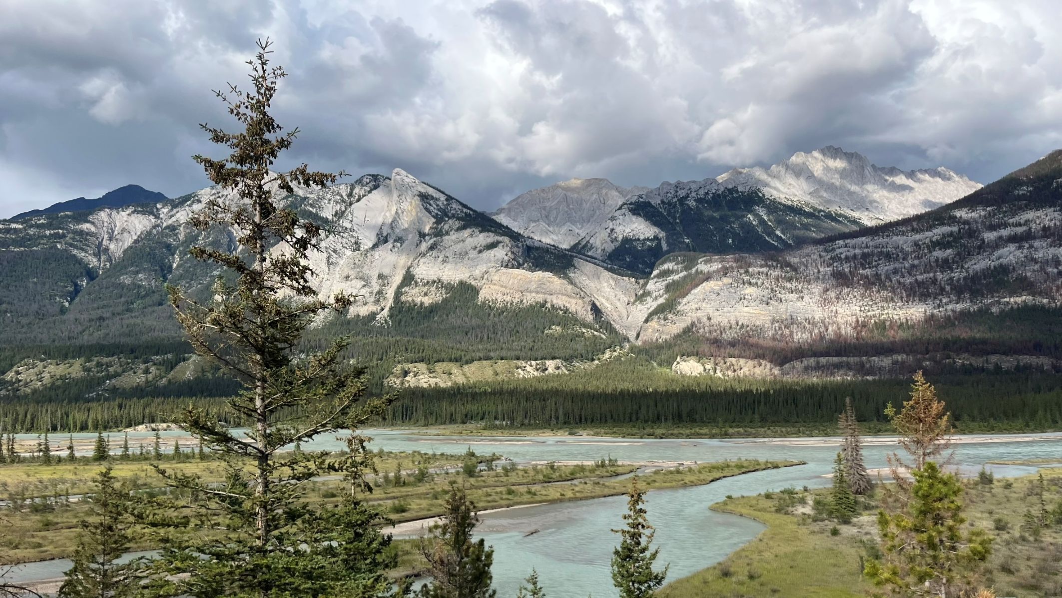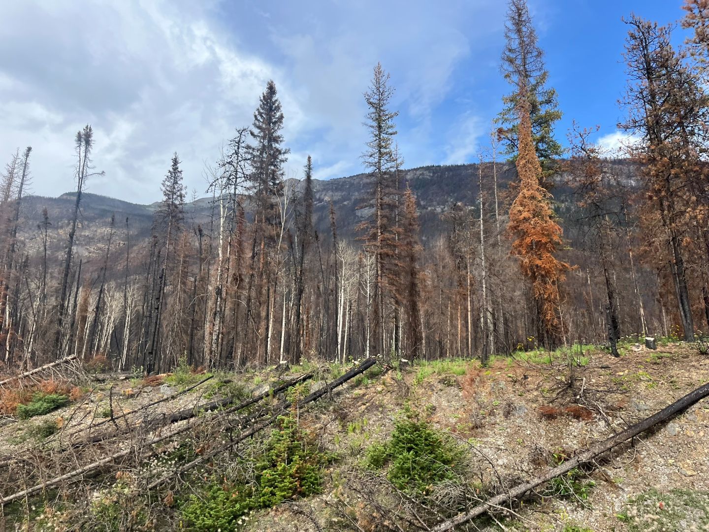 So 35 Km vor Jaspar sieht man dann die ersten Waldbrandgebiete. Es geht nicht lang und die abgefackelten Gebiete reichen von Baumgrenze links durchs komplette Tal bis Baumgrenze rechts am Berg. Alles abgefackelt nur noch Gras dazwischen und teilweise nicht mal mehr das. Richtig bedrückend wird die Stimmung🙁