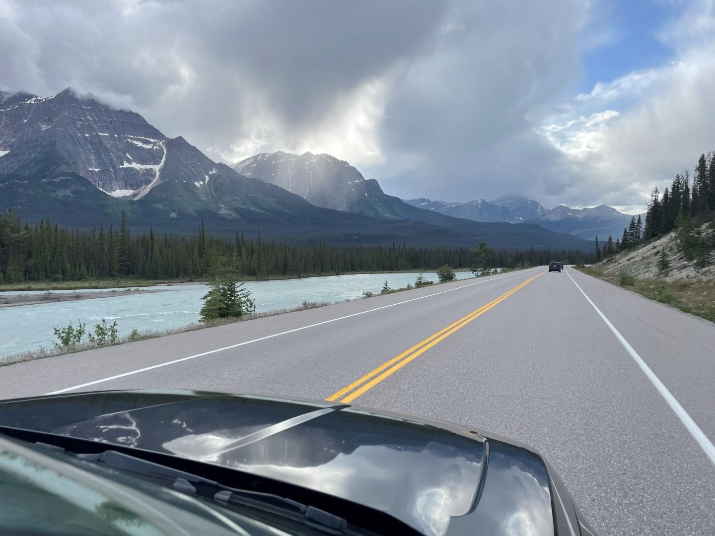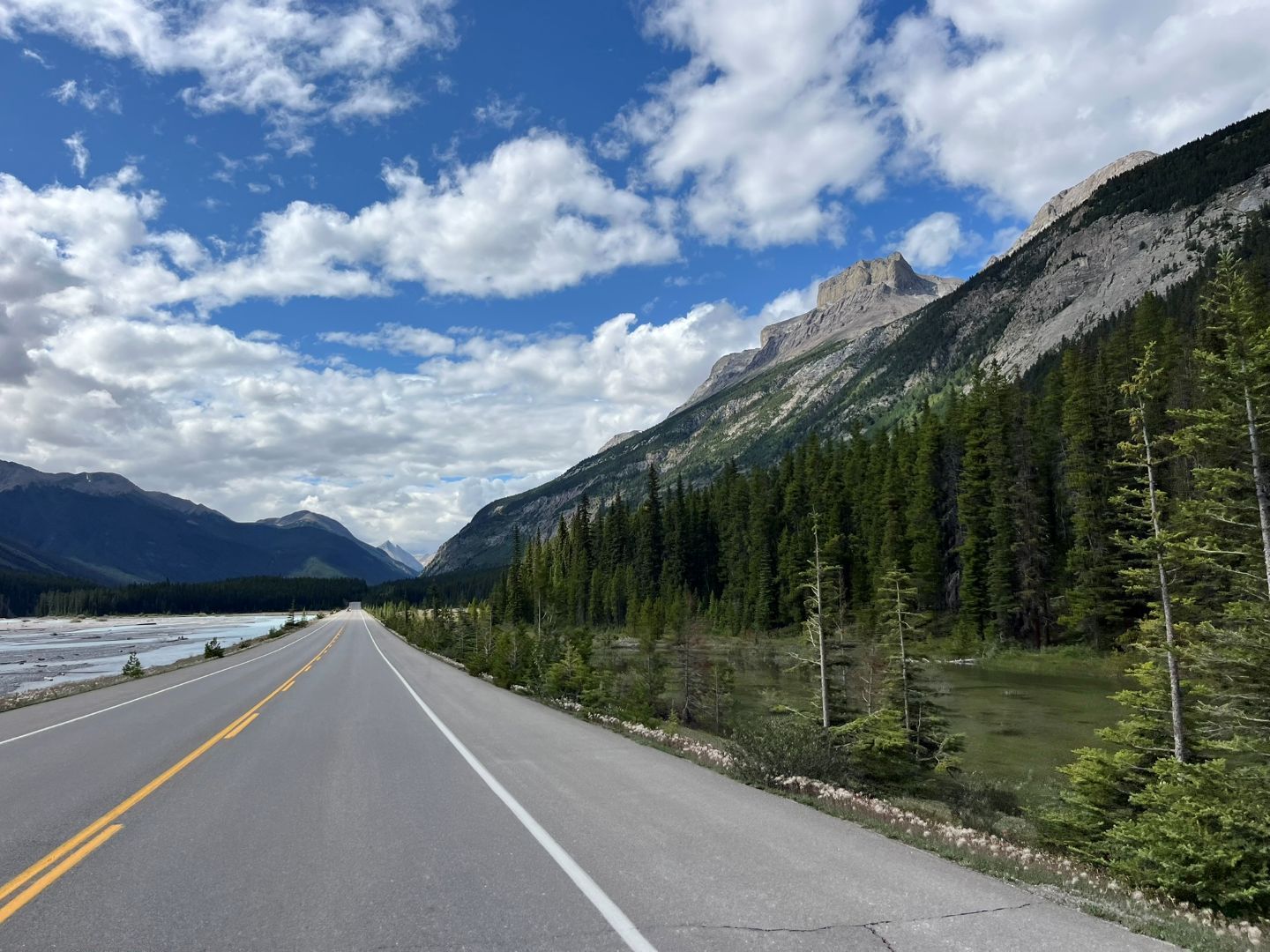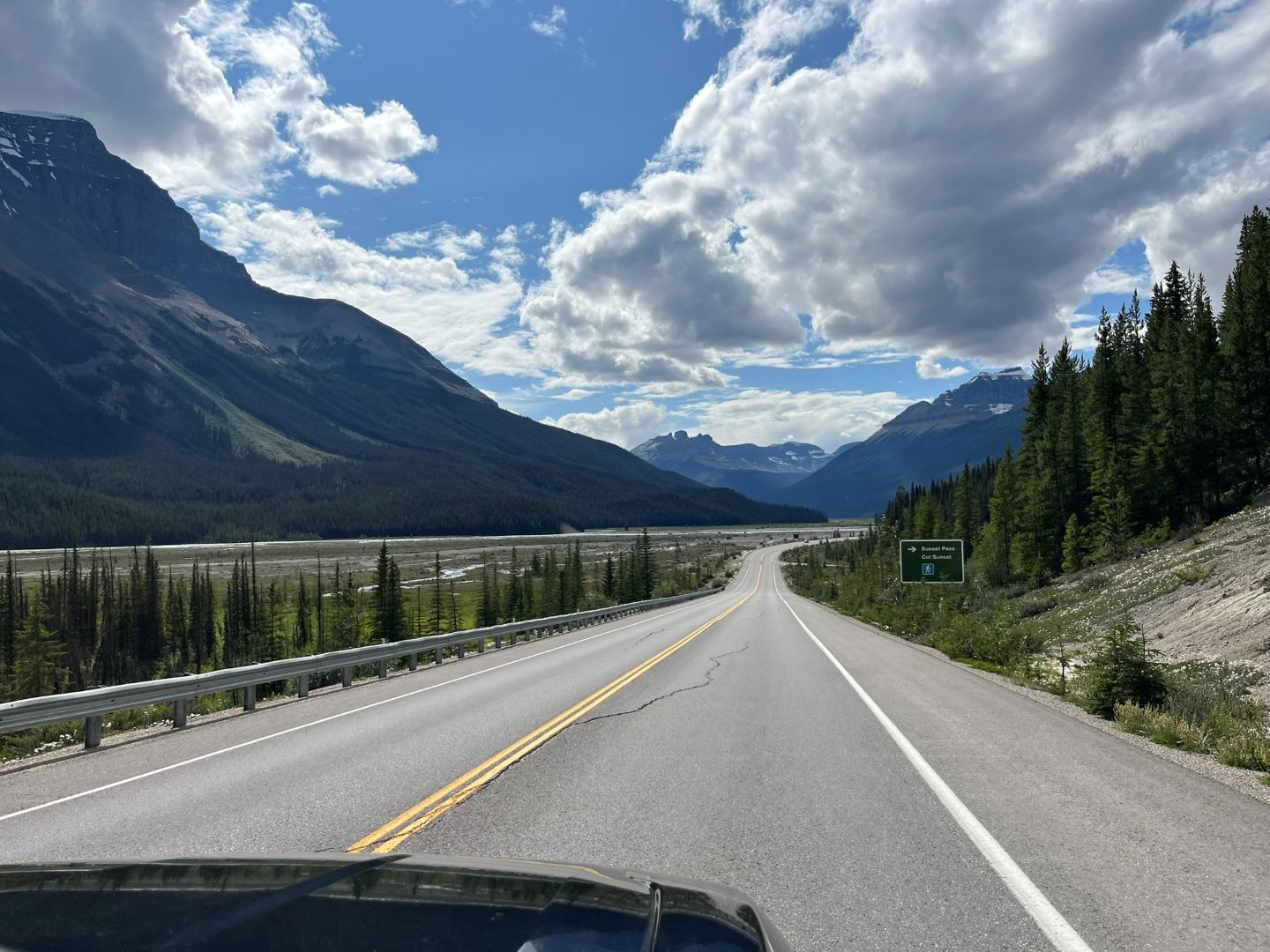 Der Icefield Parkway ist eine 230 km lange Landschaftsroute durch die Rockys. Man fährt auf 1400 bis 2100 m Höhe zwischen unzähligen 3 1/2 Tausender durch. Absolut tolle Route mit grandioser Kulisse.