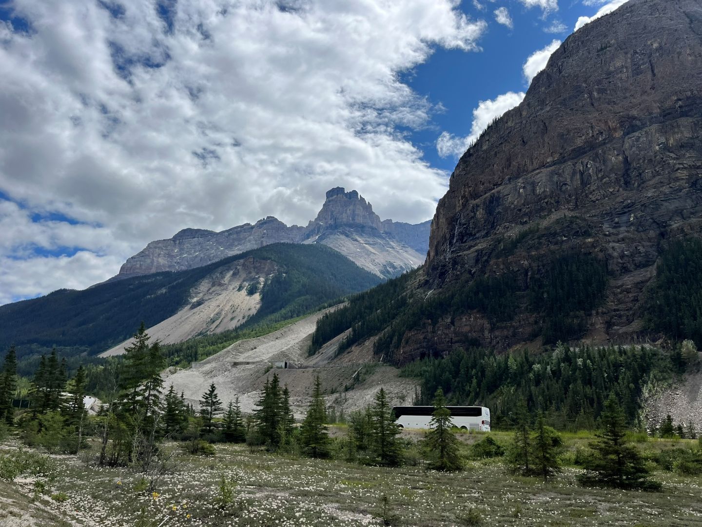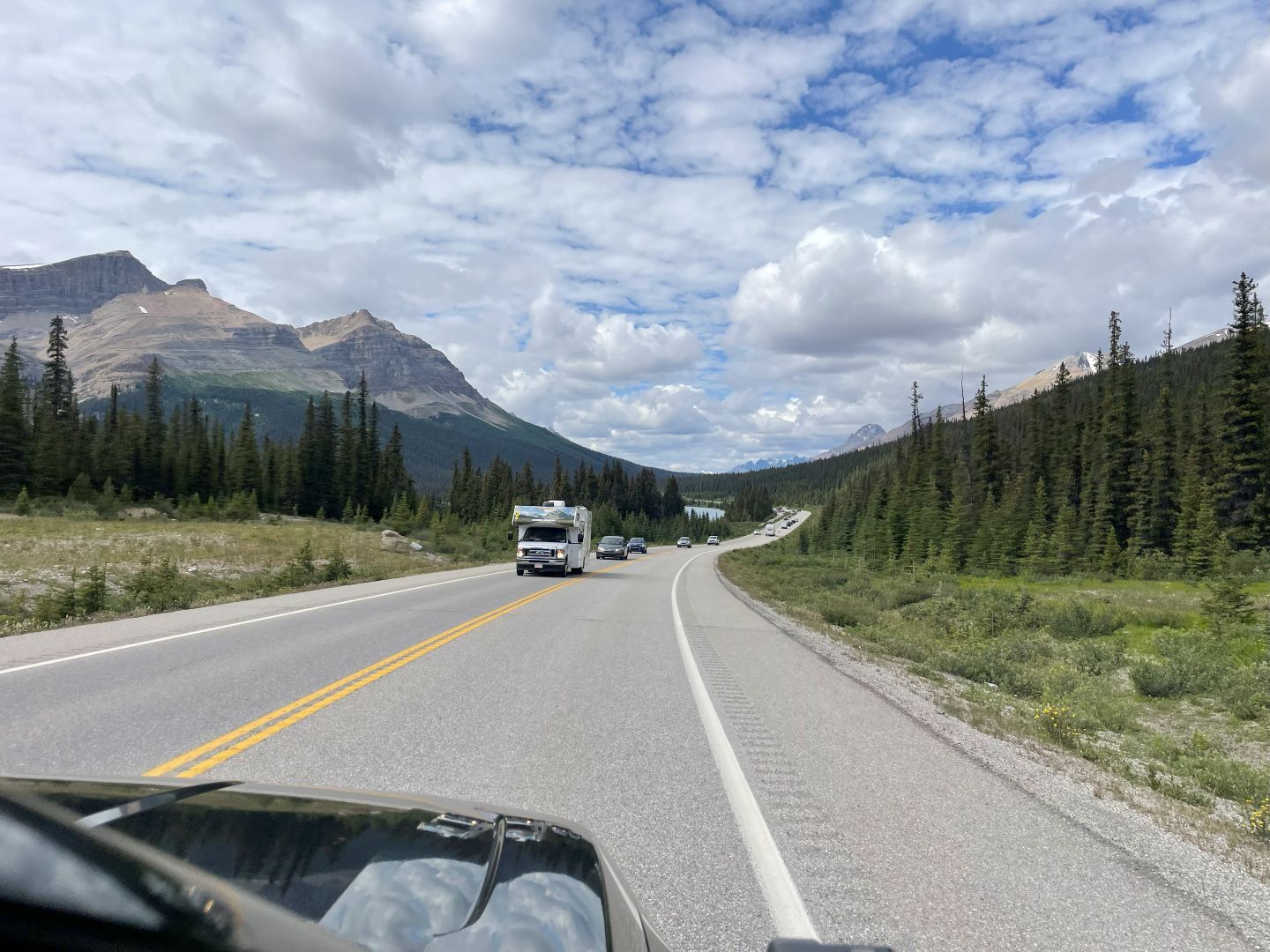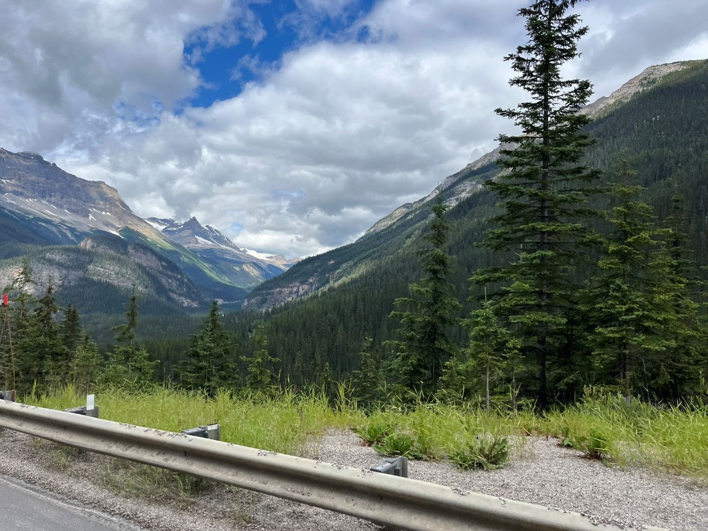 Es geht weiter auf dem Trans Canadian Highway wieder Richtung Lake Louise und danach in den Yoho National Park zu den Takakkaw Falls. Schon bereits auf dem Weg dorthin präsentieren sich die Rocky Mountains von ihrer besten Seite. Wahnsinnig die riesigen Berge links und rechts. 👍🙂 Die Höhe kommt auf Fotos gar nicht rüber.