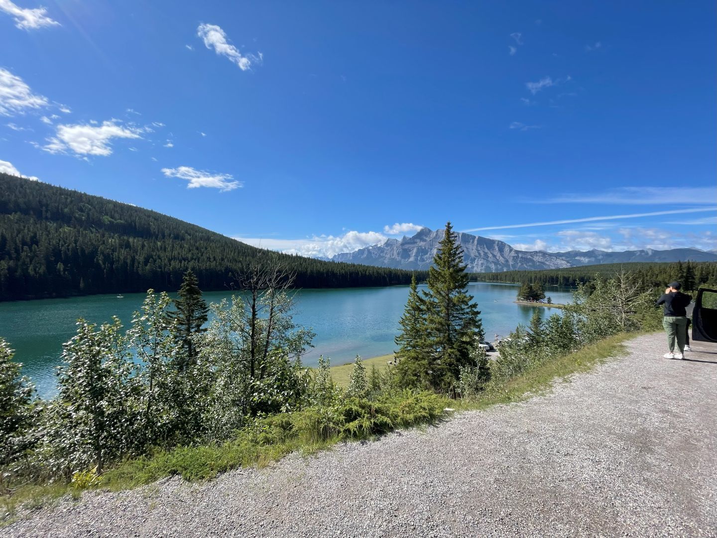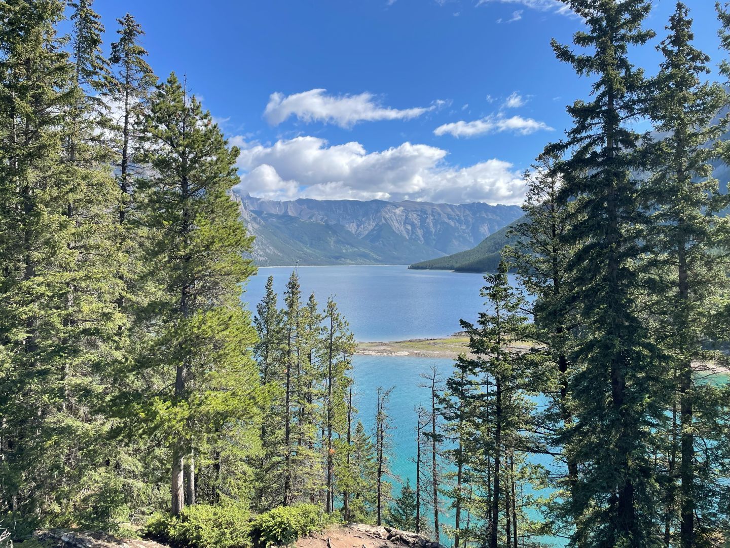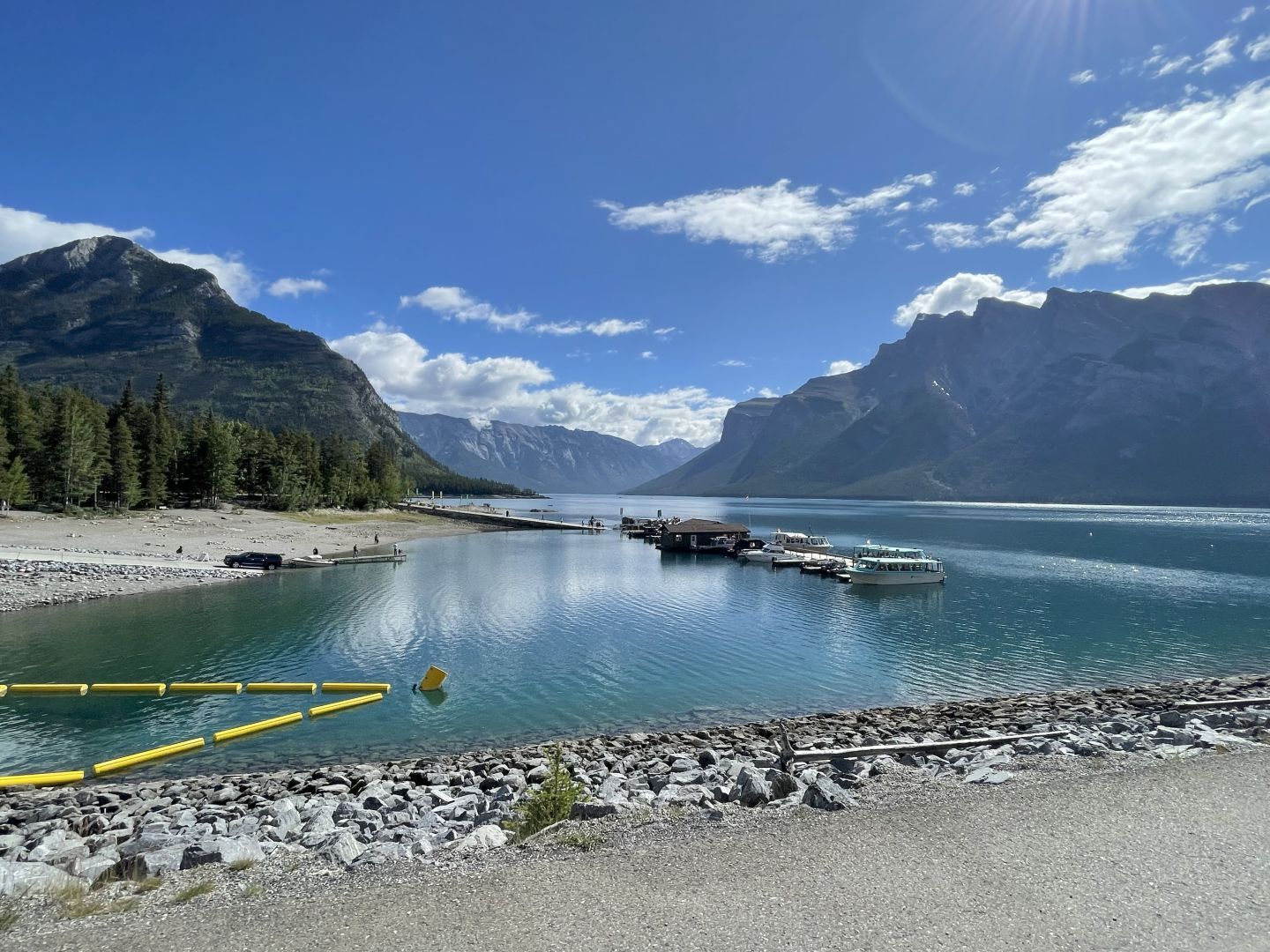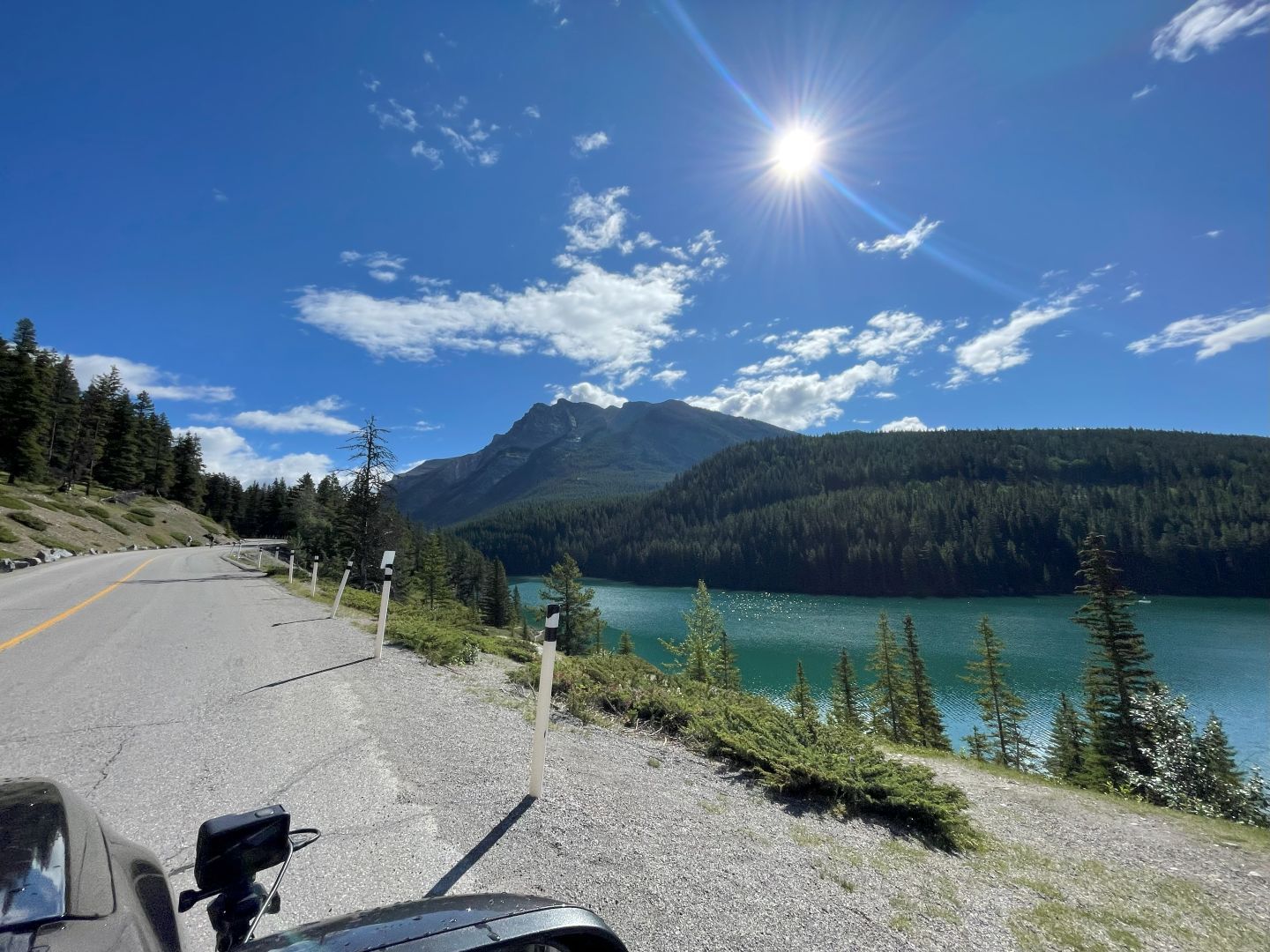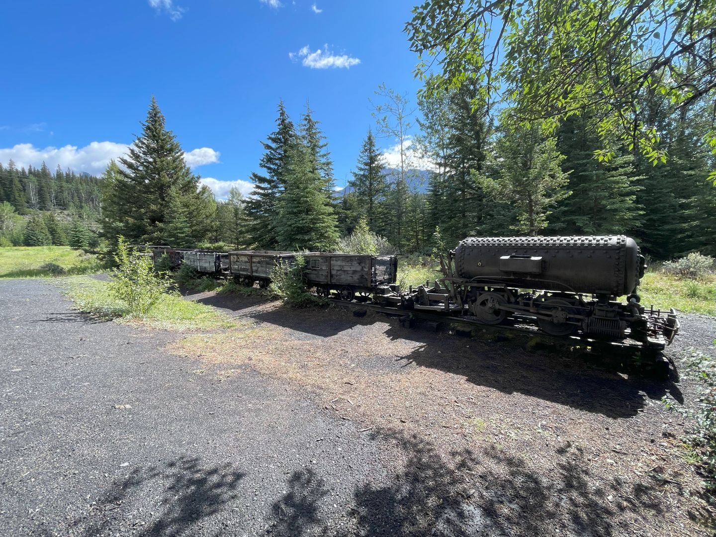 Morgens scheint die Sonne und ein paar Strahlen schaffen's sogar zwischen den Bäumen durch. Es geht zuerst auf dem Lake Minnewanka Loop weiter zum gleichnamigen See. Auf dem schönen See vor toller Bergkulissen hätten wir schön Paddeln können aber dafür bleibt keine Zeit. Es geht 3 km weiter nach Upper und Lower Bankhead. Bankhead war eine Bergarbeiter Städtchen mit bis 900 Einwohner zu Glanzzeiten. Mit Schließung der Kohle Miene war aber dessen Schicksal 1930 besiegelt und es wurde Beschlossen den Ort zu renaturieren. Die Häuser wurden entweder abgerissen oder in andere Orte verfrachtet. In Upper-Bankhead wo der Wohnort war gibt's heut nur noch einen Wanderparkplatz. In Lower-Bankhead kann man noch Reste der Miene betrachten. Es führt ein Rundweg durch die Mauerreste und Gebäudereste, auch die ein oder andere Maschine sowie eine Grubenbahn stehen noch rum. Bei diesen gibt's auch immer Schilder die Geschichte von Bankhead und der Miene erzählen garniert mit Fotos von früher. Man kann sogar noch Kohlereste erkennen auf den zugewachsenen Halden.