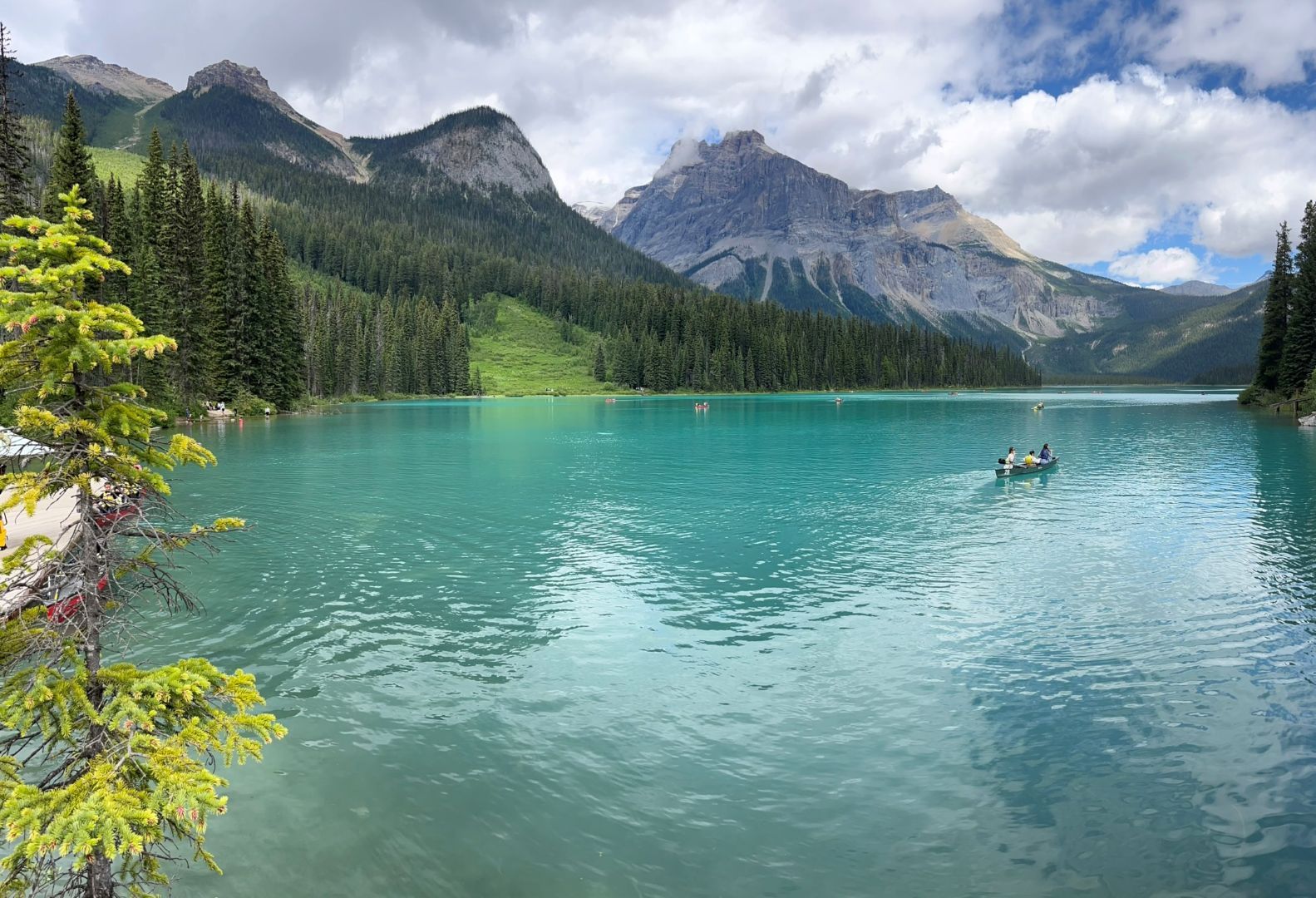 Wir fahren zurück, unser Hänger ist zum Glück noch da, und es geht weiter zum Emerald Lake ...leider ist auch hier alles voll. Bereits 1,5 km vor dem eigentlichen Parkplatz stehen die Autos am Straßenrand. Wir fahren hin, ich steig aus, quetsch mich zwischen Menschenmassen durch, mach 2 Fotos und weg hier🙄. Scheee ist er aber.