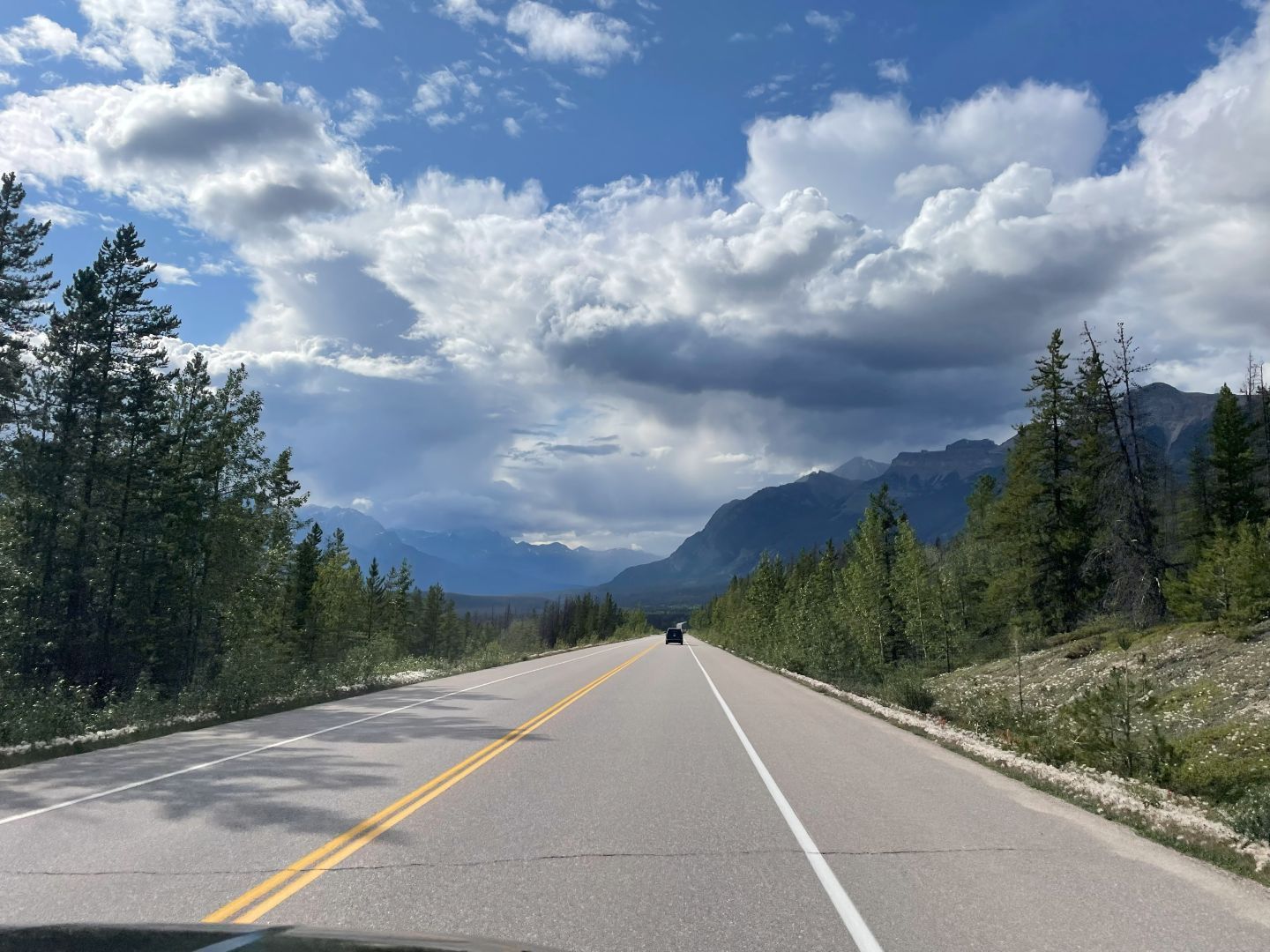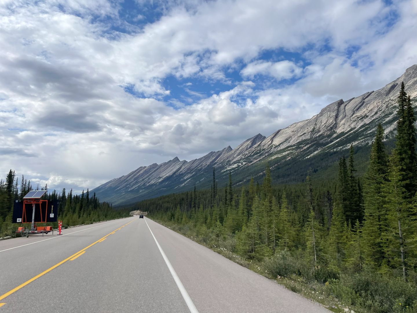 Es geht wieder zurück und dann auf den Icefield Parkway Richtung Jasper. Bereits zu Beginn wird darauf hingewiesen, dass es die nächsten 260 km es kein Handyempfang mehr gibt. Und so ists dann auch. Erst ist noch SOS möglich aber kurz drauf war es das.