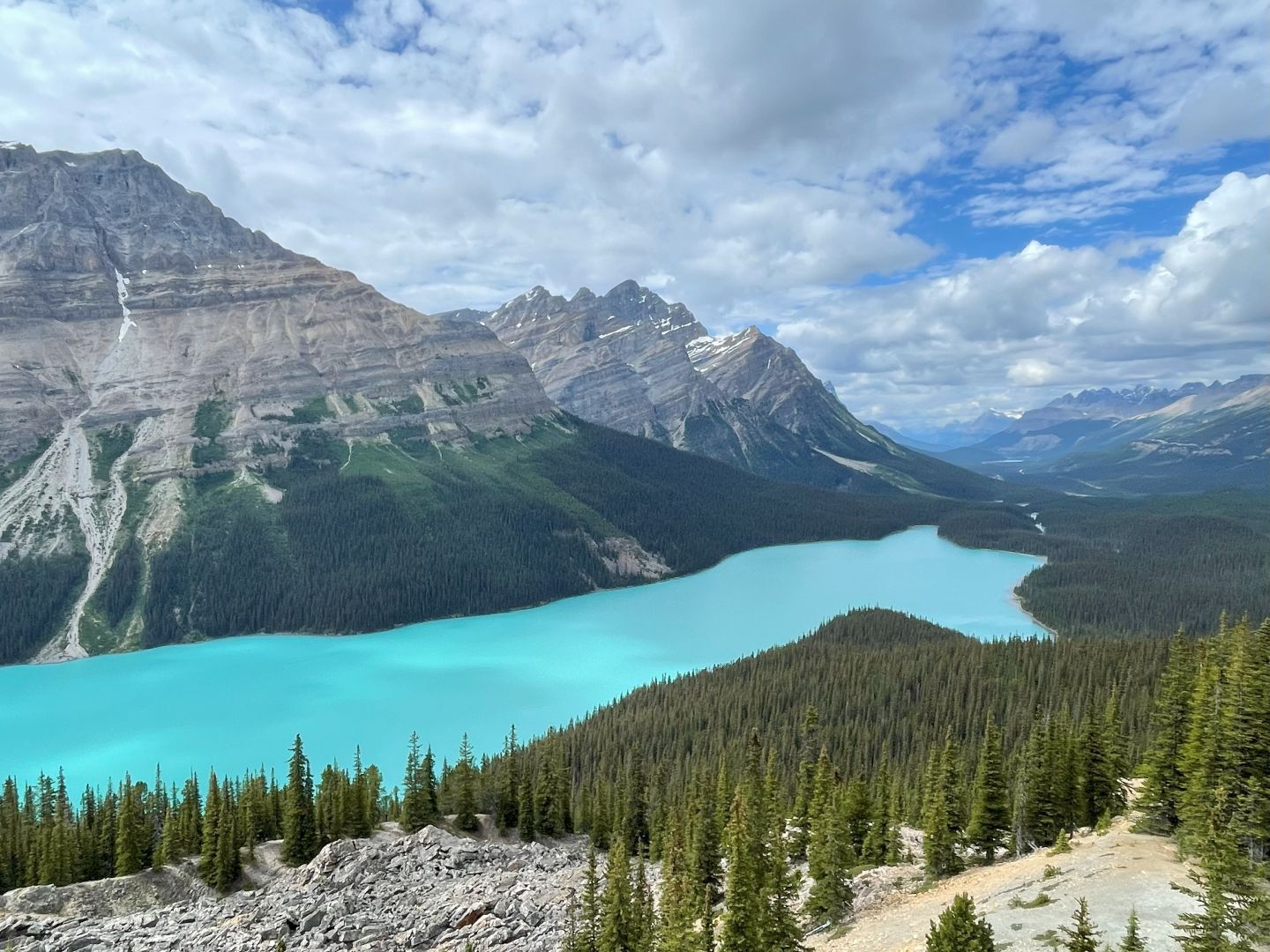 Es geht weiter an den Aussichtspunkt für den Payto Lake der oft als Kalenderbild für Kanada herhalten darf. Auch hier wieder Tonnen von Asiaten. Die können Canada eigentlich auch Chinadien umbenennen😁. Man merkt, ich entwickle langsam eine Aversion gegen die. Vor allem gegen Zentralasiaten wie Indern, die nahezu immer in großen Gruppen, laut und rücksichtslos auftreten. Inzwischen werden selber die Ellenbogen ausgefahren und es gibt auch die ersten Rempler.
