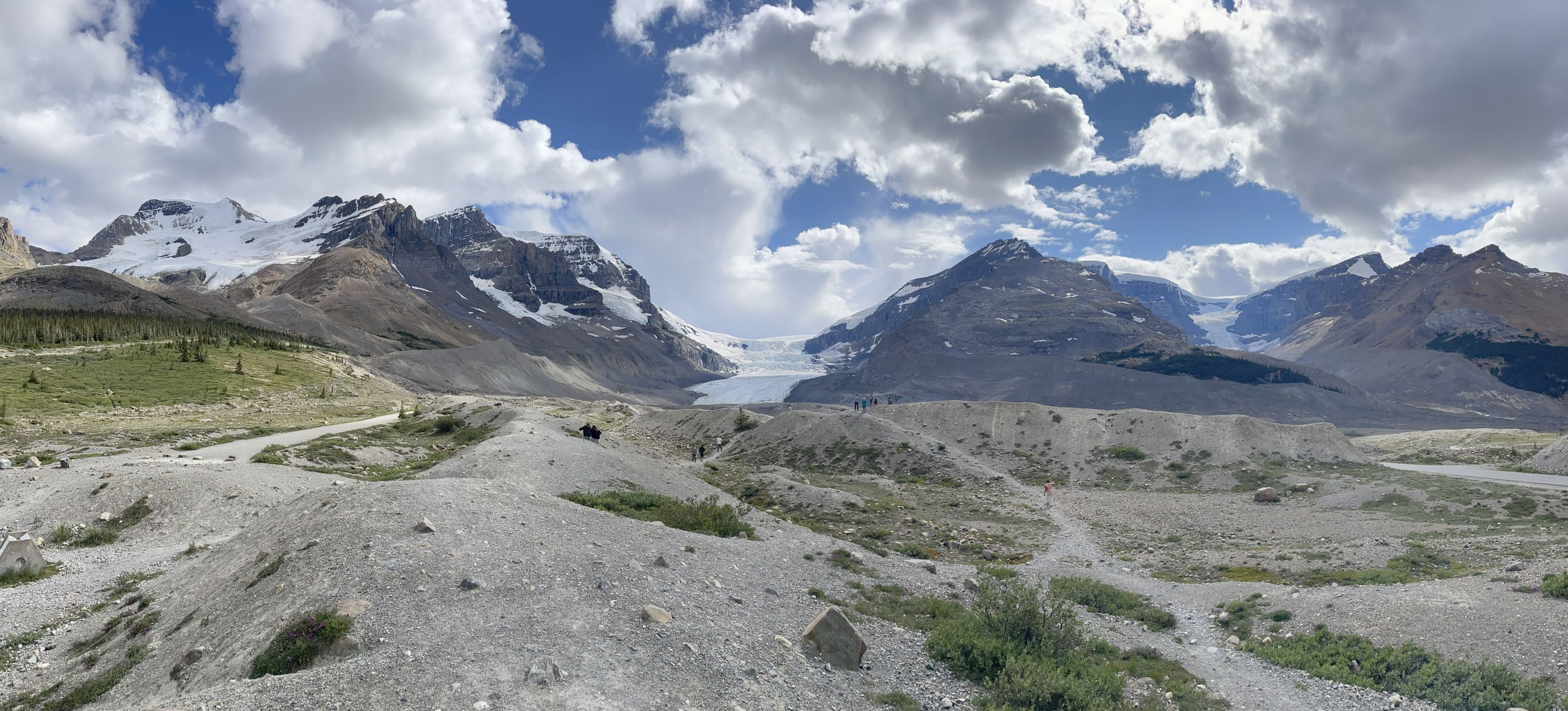 Wir halten noch am Columbia Icefield an ...aber nur kurz für Fotos vom Athabasca Gletscher ...es ist schon spät und wir haben noch so 100 km bis zum Camping.