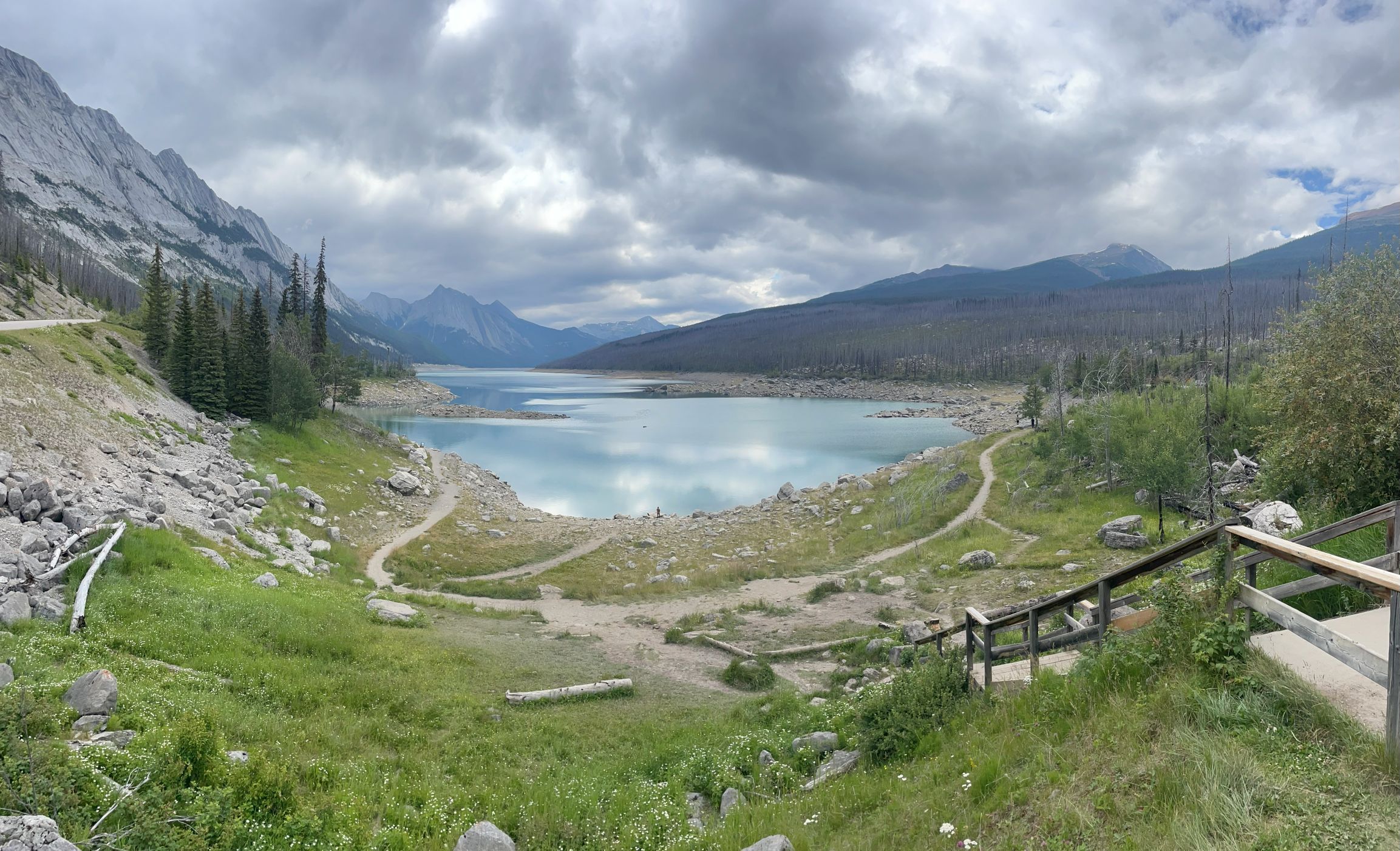 Es kommt der Medicine Lake, an dessen Ende der Maligne River in eines der größten unterirdischen Flusssysteme der Welt abfließt.