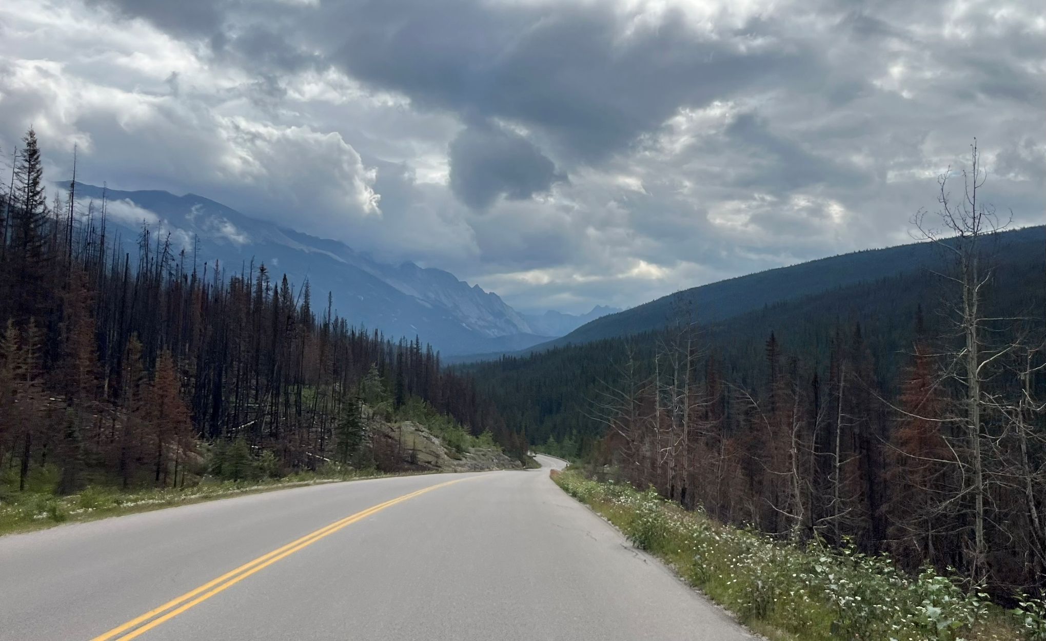 Wir kommen spät los (zu lang geschlafen), Frühstück fällt aus, und es geht auf die Maligne Lake Road in Richtung namensgebenden See. Davor wollte wir eigentlich den Maligne Canyon besichtigen ...der soll wohl zu den beeindruckendsten Sehenswürdigkeiten hier gehören... aber das Gebiet ist leider großräumig gesperrt. Wir fahren weiter, es wird auch wieder langsam grün. Zum Glück hats der Waldbrand nicht weiter geschafft.