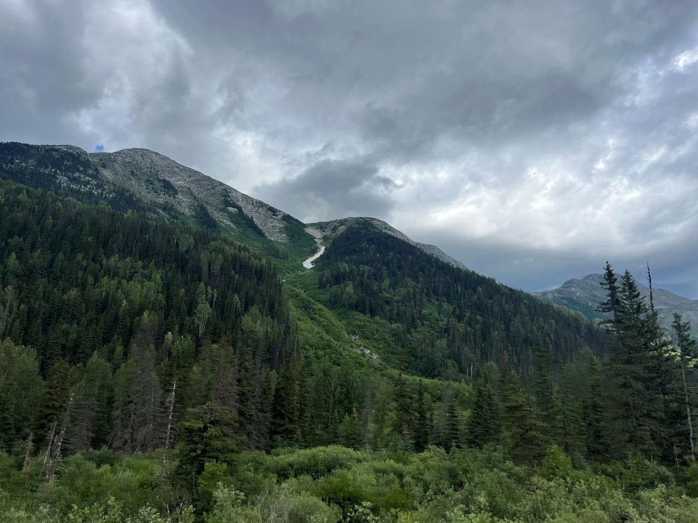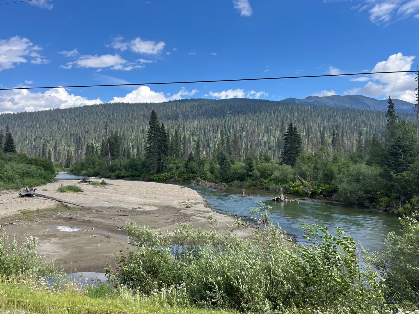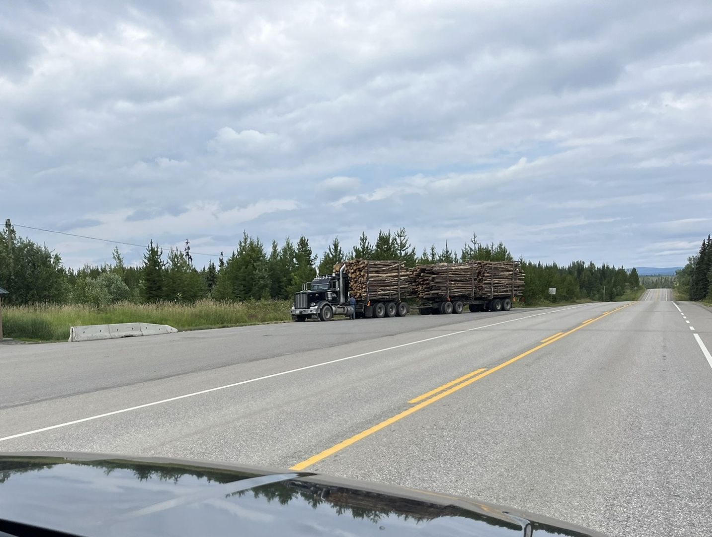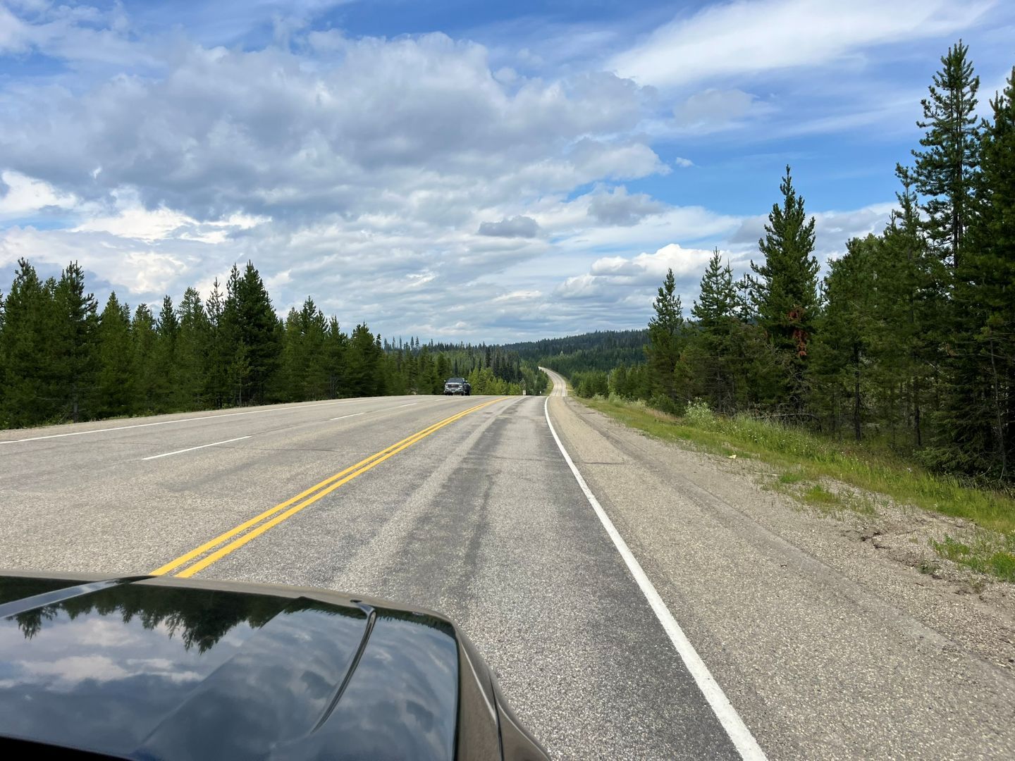 Weiter geht's auf dem John Hart Highway erst Richtung Norden und später Richtung Osten nach Dawson Creek (nicht zu verwechseln mit Dawson City). Die Landschaft wird recht schnell wieder bergig und ist schön anzuschauen. Leider ist das Wetter sehr wechselhaft und es regnet immer wieder. Einmal ist es im „Thunderstorm" auch so heftig, dass man die Straße kaum noch erkennen kann. Unser Fahrzeug sieht leider danach nicht, wie erhofft, sauberer aus 🙁