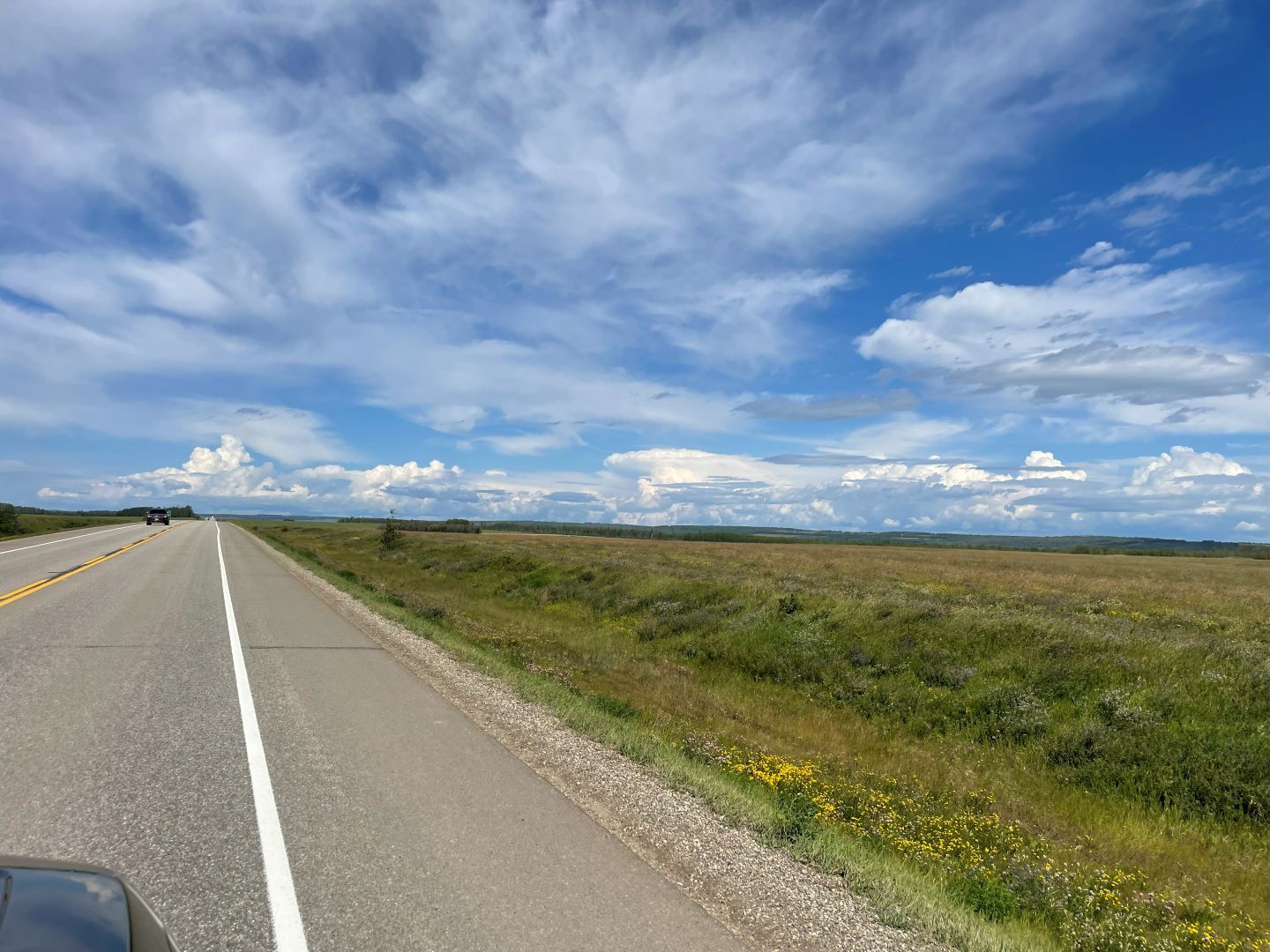 Bei Fort Nelson geht's erstmal wieder tanken. Soviele gibts hier nicht mehr, außer sogenannte „Cardlock"-Tanken für LKW's. Hier kann man normalerweise nur mit Flottenkarten für Firmen tanken. Der Preis ist oft geheim. Der Otto-Normalverbraucher soll wohl nicht mitbekommen wie er an normalen Tanken abgezogen wird. Auch wir „düfen" 1,79 CA$ für den Liter Diesel hier bezahlen ...dass ist das teuerste bisher auf der Reise. Die Zeiten wo der Diesel, wie im Reiseführer beschrieben, umgerechnet 0,60 EUR gekostet hat, sind wohl auch in Kanada vorbei😞