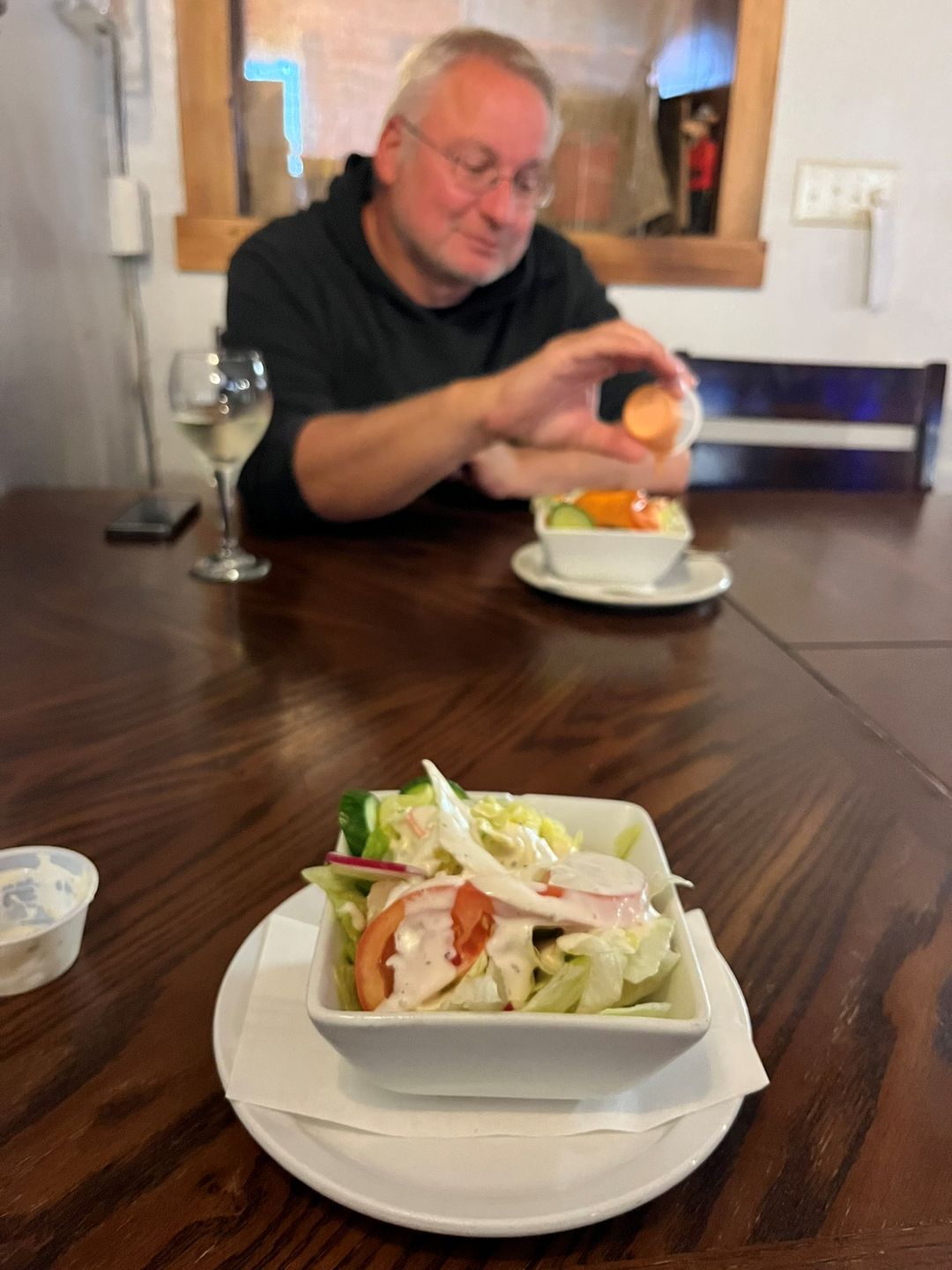 Ich ess ein Steak (New York Strip loin oder so ähnlich) und Kunzi Chicken Parmesan ...nicht schlecht auch wenn's bei Kunzi weniger Tomatensoße auf dem überbacken Hähnchensteak hätte sein dürfen.