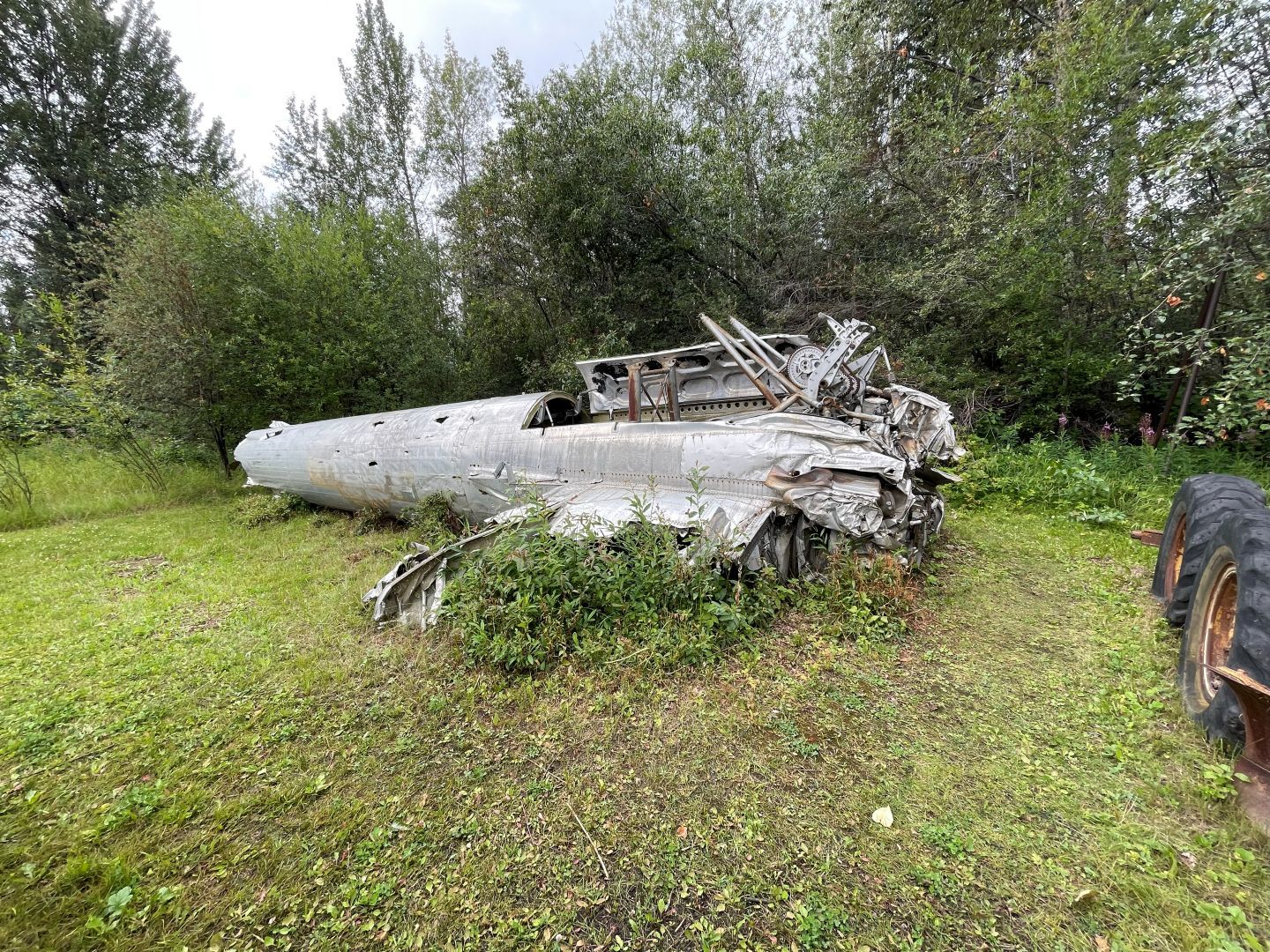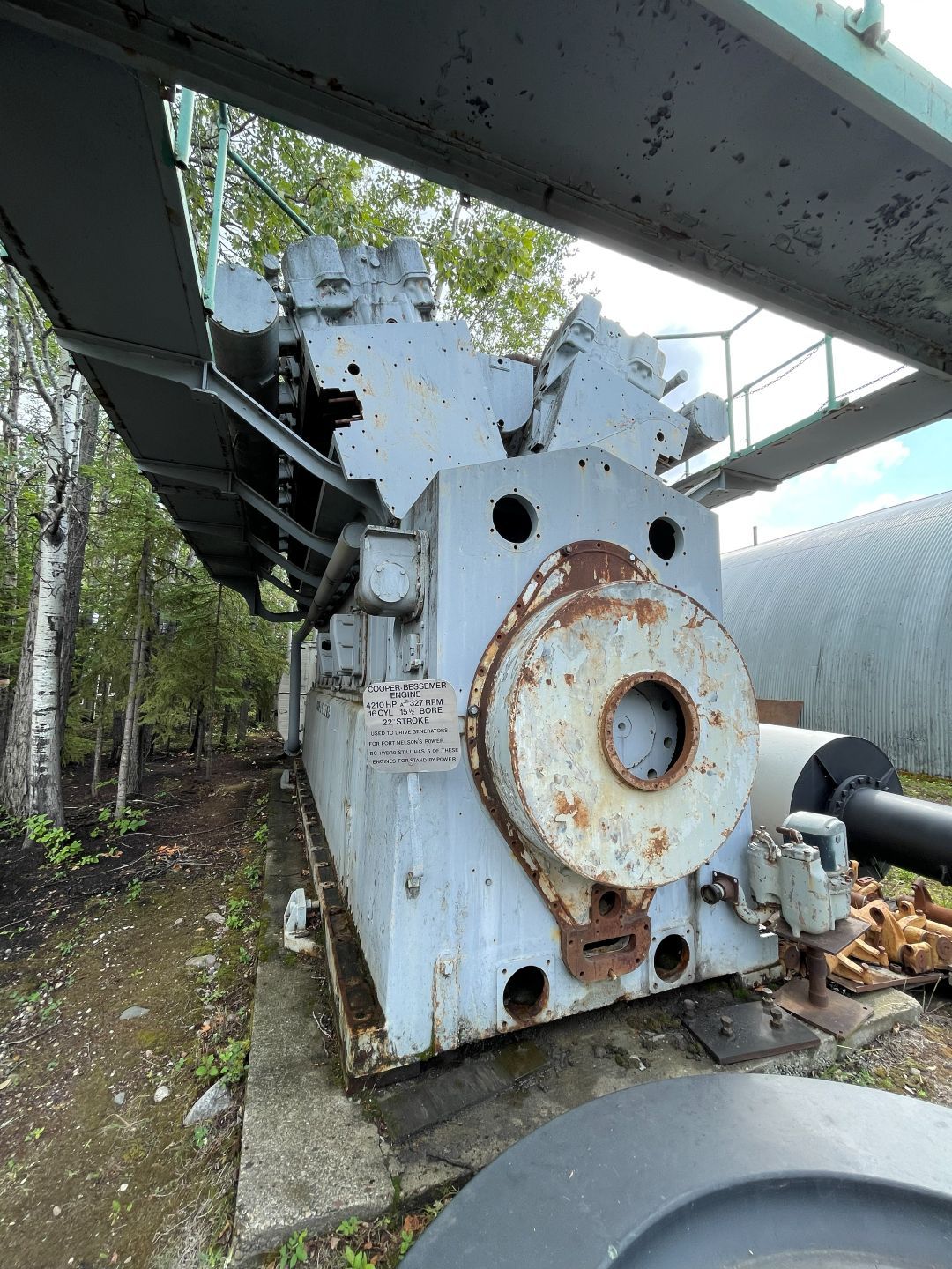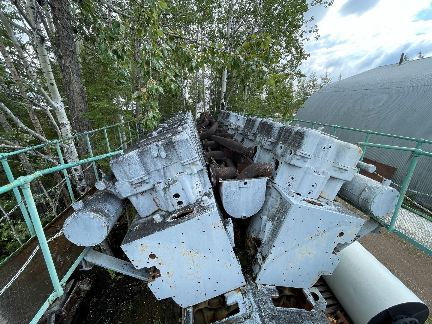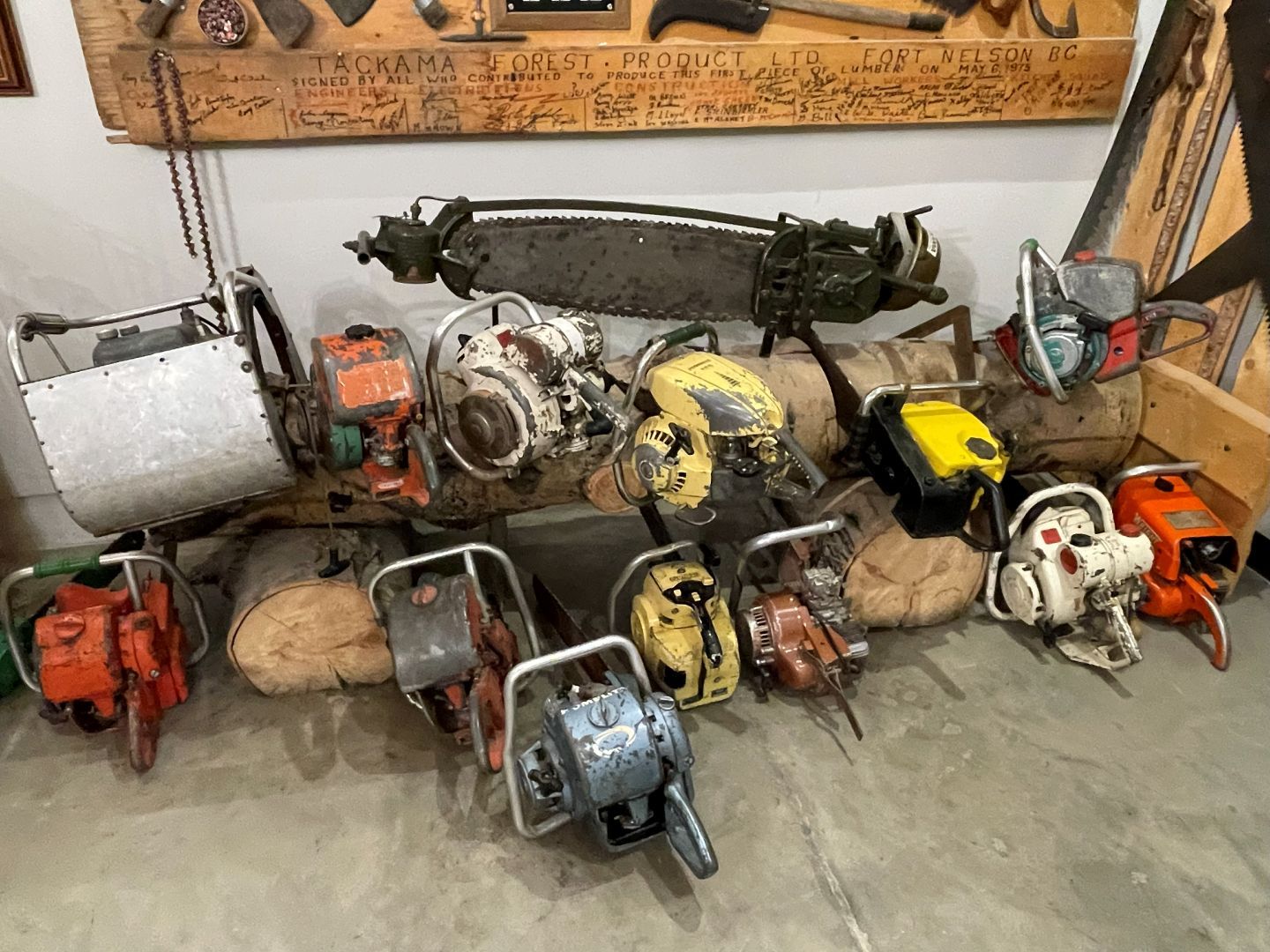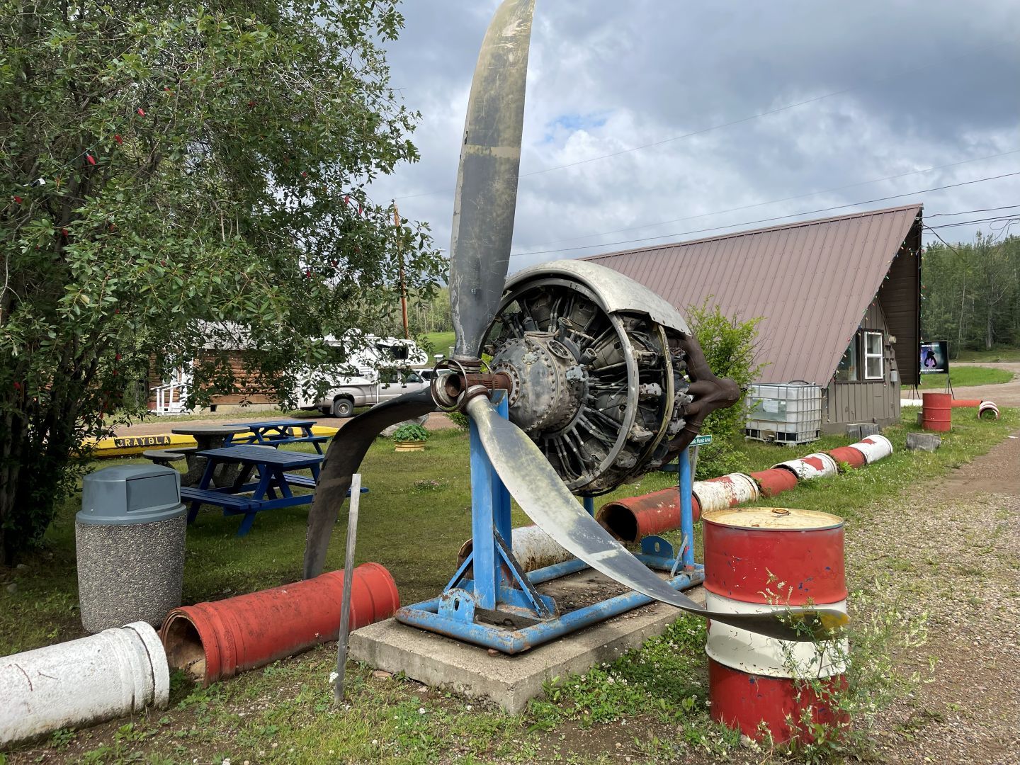Es gibt nur Kaffee dann geht's ins Fort Nelson Heritage Museum nebenan. Das beherbergt ein dermaßen unglaubliches Sammelsurium an alten Sachen, dass man dort auch locker den ganzen Tag verbringen kann. Von altem Werkzeug aus dem vorletzten Jahrhundert bis zum Netzwerkschrank von Motorola, ich denk mal der war aus den 70er und dürfte das Modernste gewesen sein. Oldtimer aus mehren Epochen ...manche schon im Zerfall, über Raupenbagger, Traktoren, LKW's, Maschinen aller Art und kuriose Fahrzeuge bis zum Bohrturm auf einer Pontonplattform. Auch ein Flugzeugwrack und der Riesige Motor aus einem dem „Powerhouse" von früher in Fort Nelson stehen rum. Drinnen gibt's