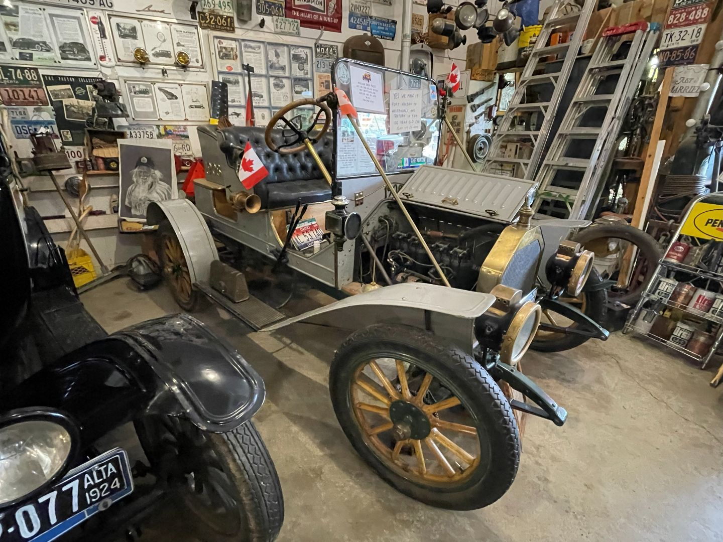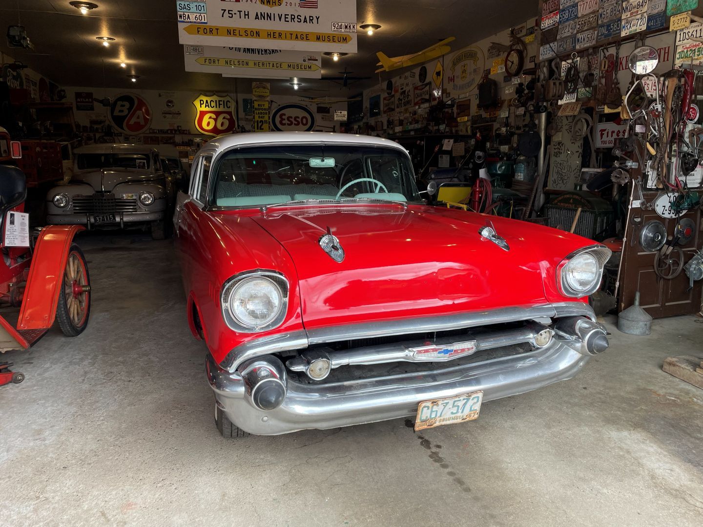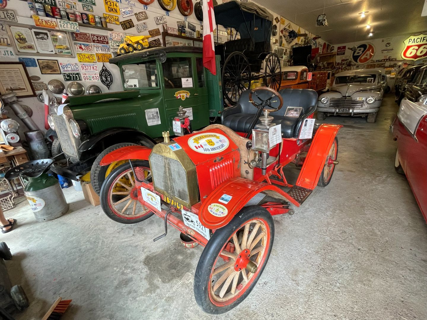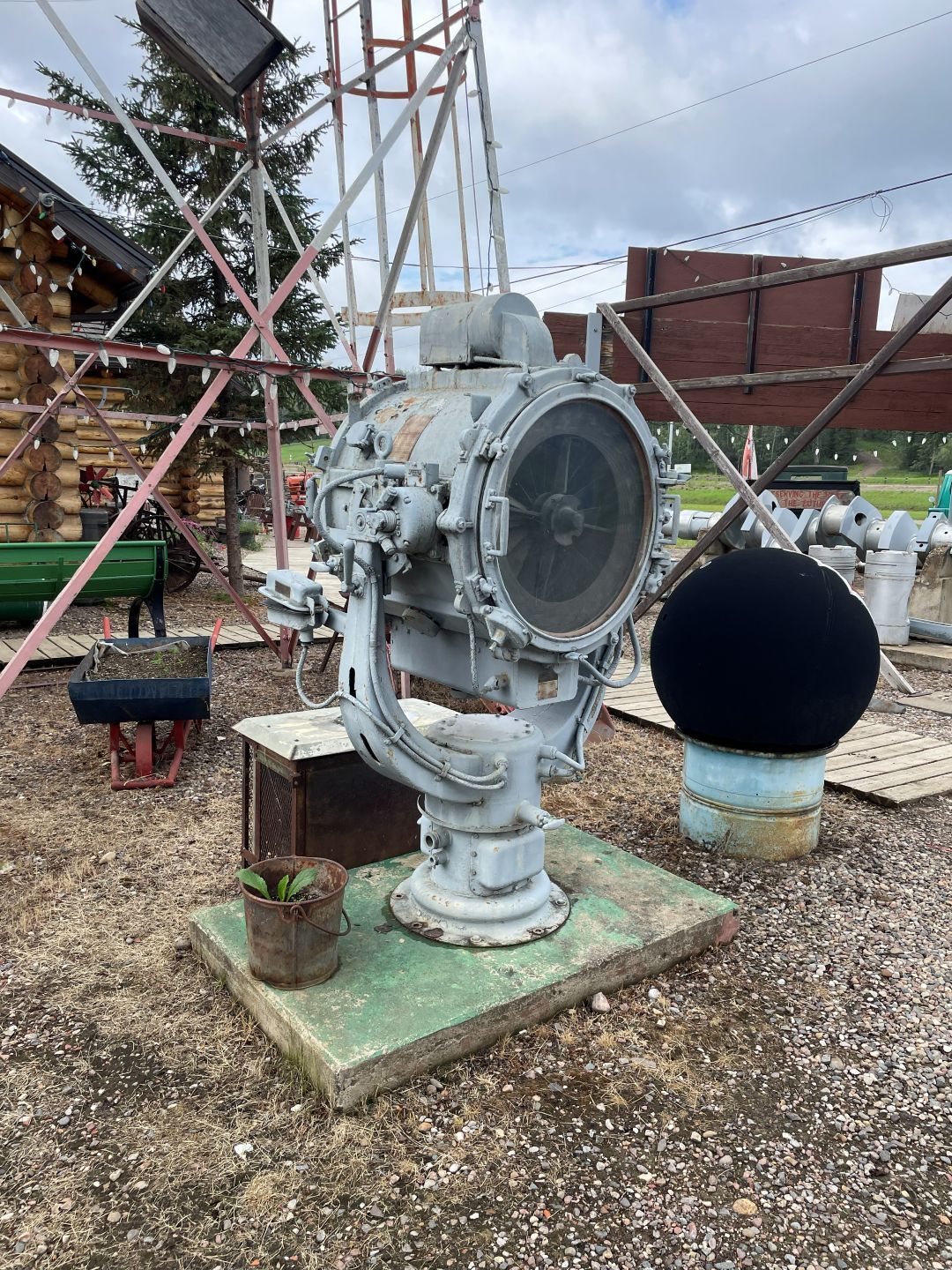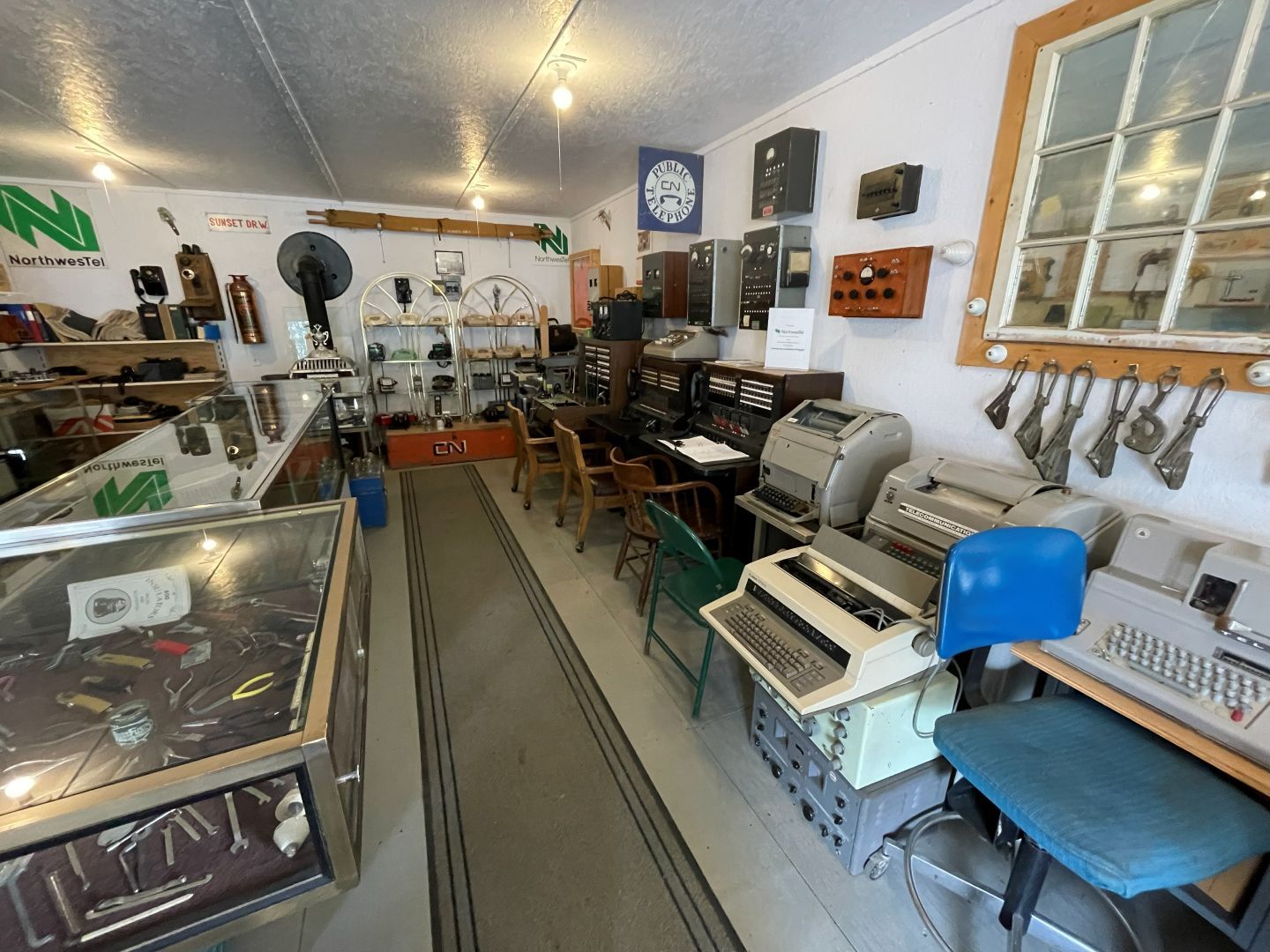 Es gibt nur Kaffee dann geht's ins Fort Nelson Heritage Museum nebenan. Das beherbergt ein dermaßen unglaubliches Sammelsurium an alten Sachen, dass man dort auch locker den ganzen Tag verbringen kann. Von altem Werkzeug aus dem vorletzten Jahrhundert bis zum Netzwerkschrank von Motorola, ich denk mal der war aus den 70er und dürfte das Modernste gewesen sein. Oldtimer aus mehren Epochen ...manche schon im Zerfall, über Raupenbagger, Traktoren, LKW's, Maschinen aller Art und kuriose Fahrzeuge bis zum Bohrturm auf einer Pontonplattform. Auch ein Flugzeugwrack und der Riesige Motor aus einem dem „Powerhouse" von früher in Fort Nelson stehen rum. Drinnen gibt's