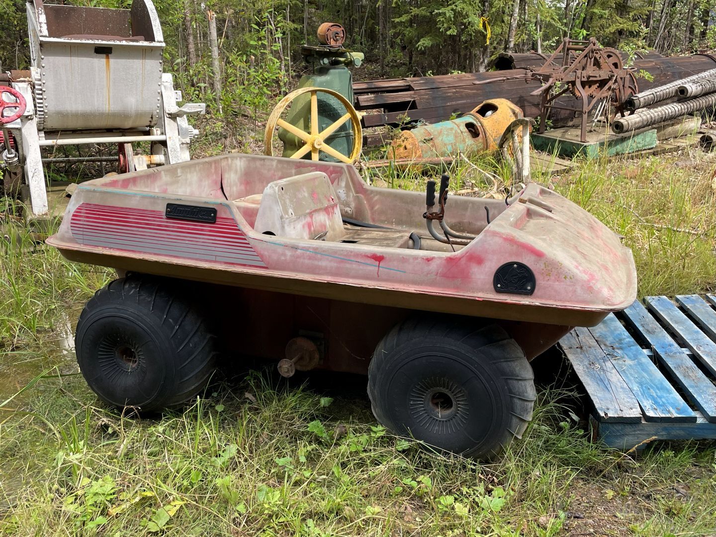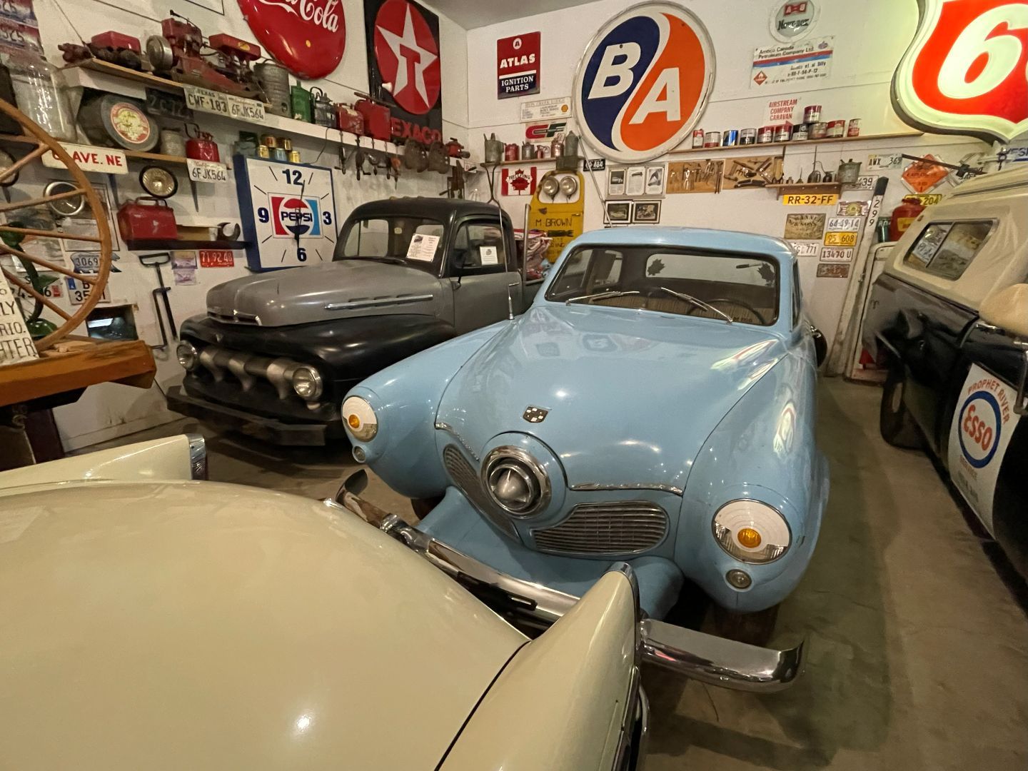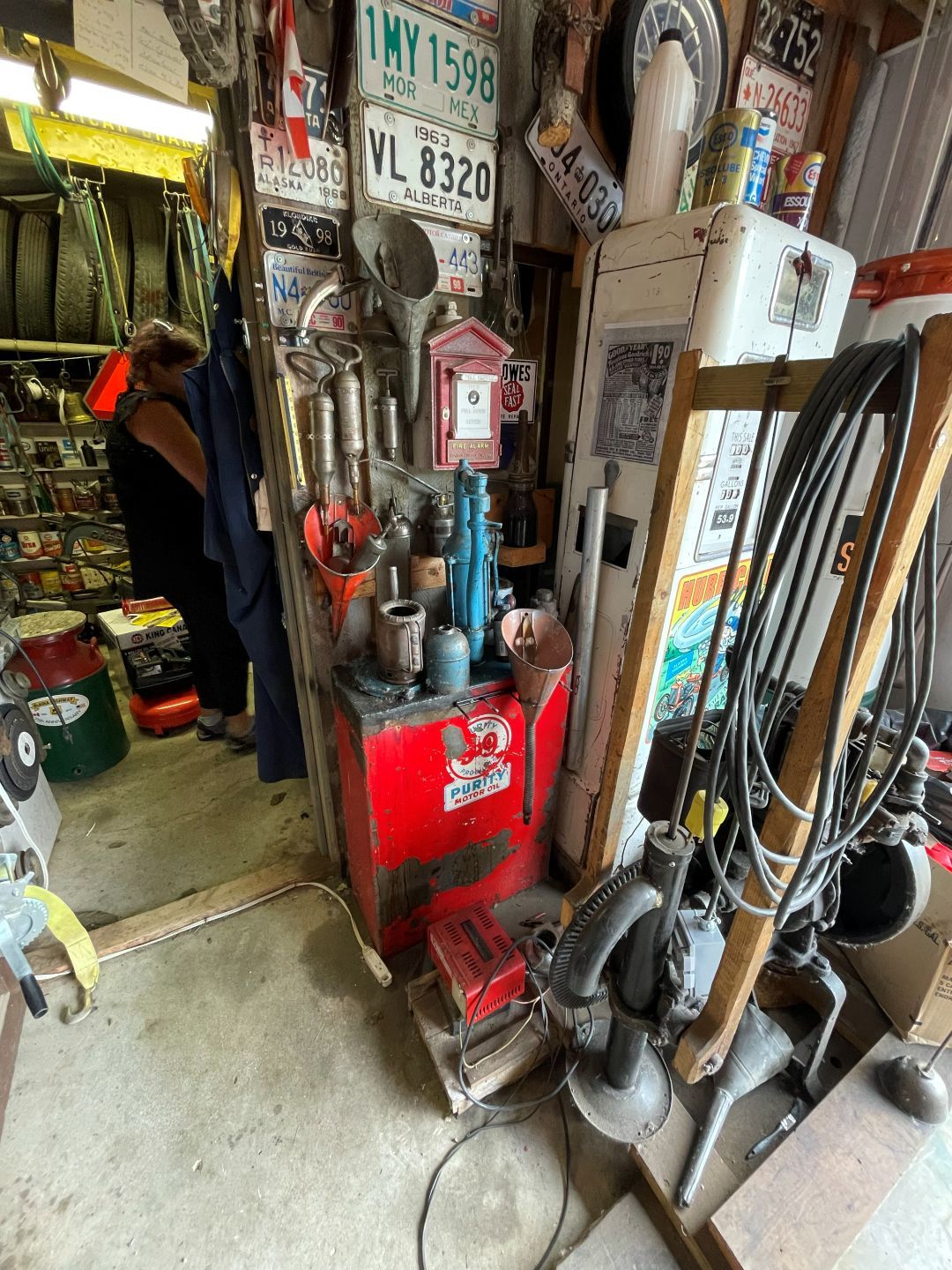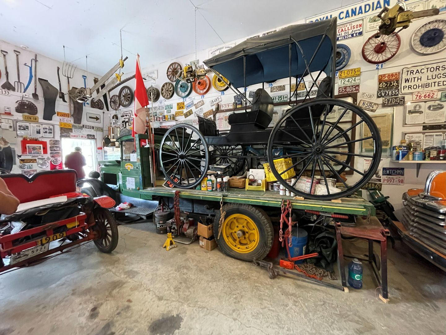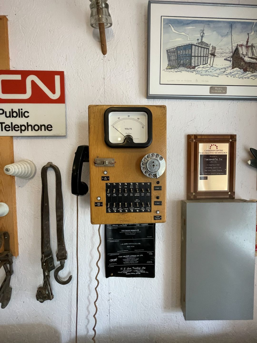 Es gibt nur Kaffee dann geht's ins Fort Nelson Heritage Museum nebenan. Das beherbergt ein dermaßen unglaubliches Sammelsurium an alten Sachen, dass man dort auch locker den ganzen Tag verbringen kann. Von altem Werkzeug aus dem vorletzten Jahrhundert bis zum Netzwerkschrank von Motorola, ich denk mal der war aus den 70er und dürfte das Modernste gewesen sein. Oldtimer aus mehren Epochen ...manche schon im Zerfall, über Raupenbagger, Traktoren, LKW's, Maschinen aller Art und kuriose Fahrzeuge bis zum Bohrturm auf einer Pontonplattform. Auch ein Flugzeugwrack und der Riesige Motor aus einem dem „Powerhouse" von früher in Fort Nelson stehen rum. Drinnen gibt's