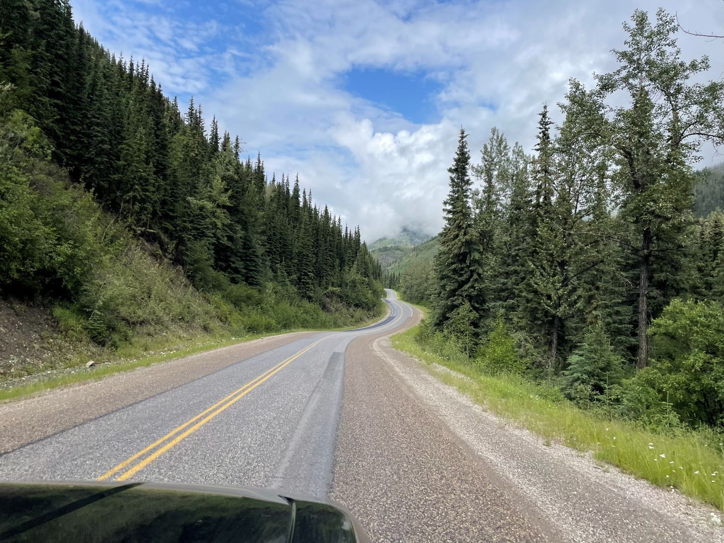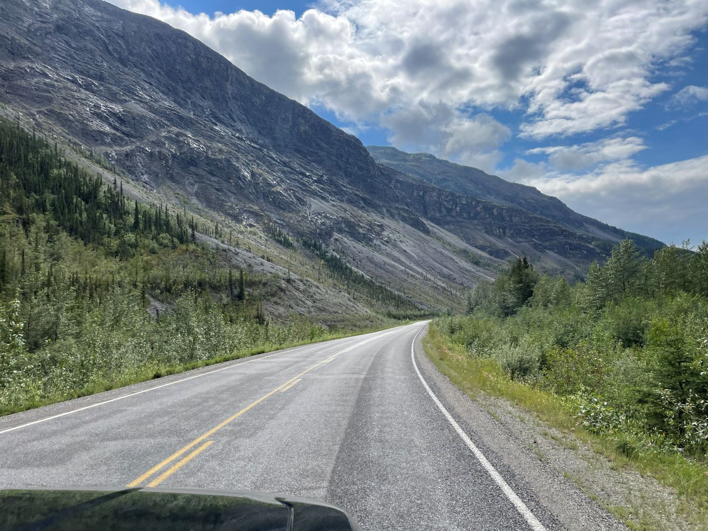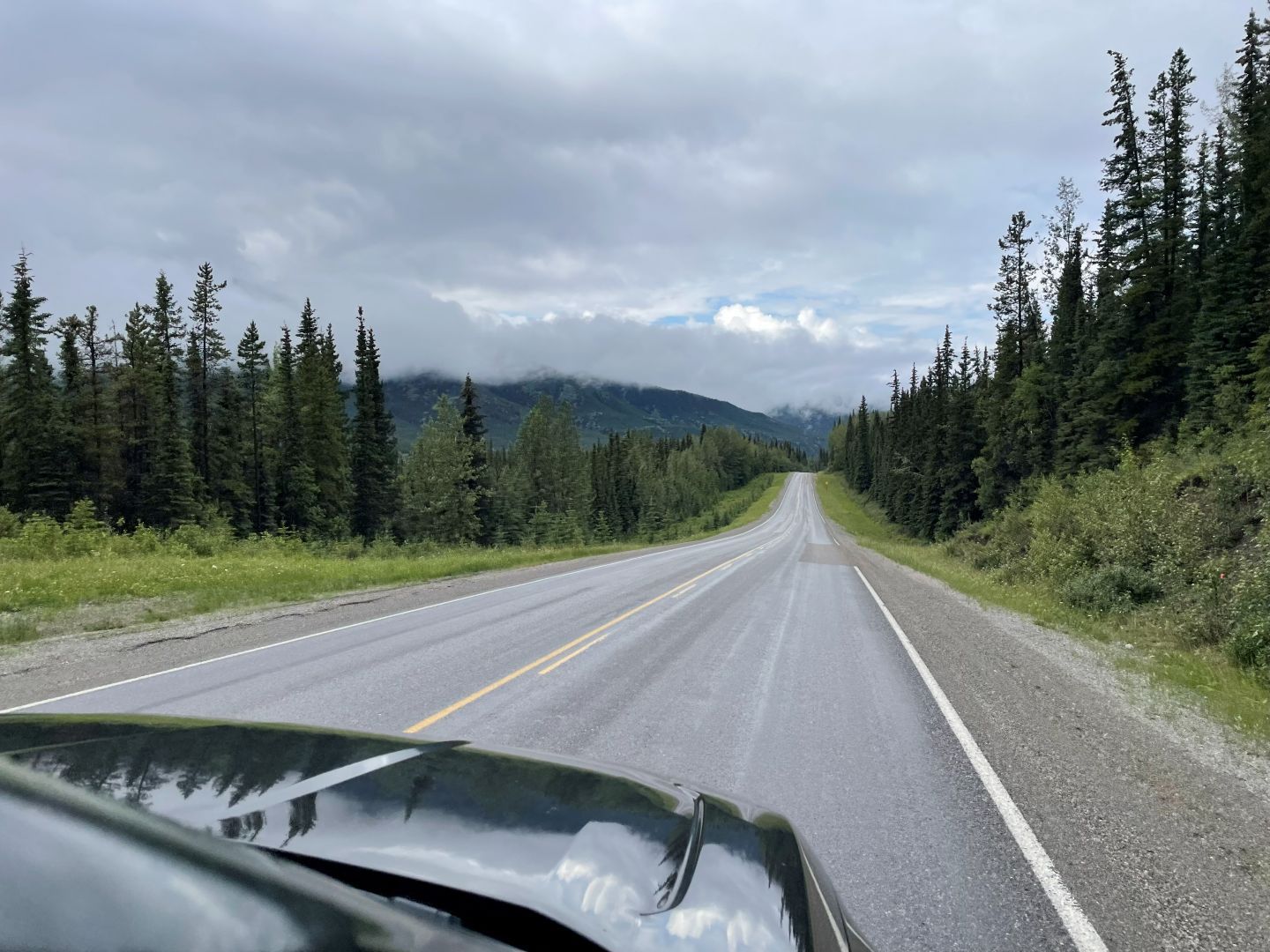 Danach geht's weiter auf dem Alaska Highway. Anfangs noch recht langweilig flach mit Wald und nichts als Wald. Viel los ist auch nicht und wir sind ziemlich viel allein unterwegs.