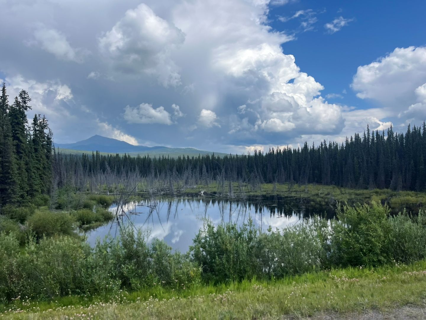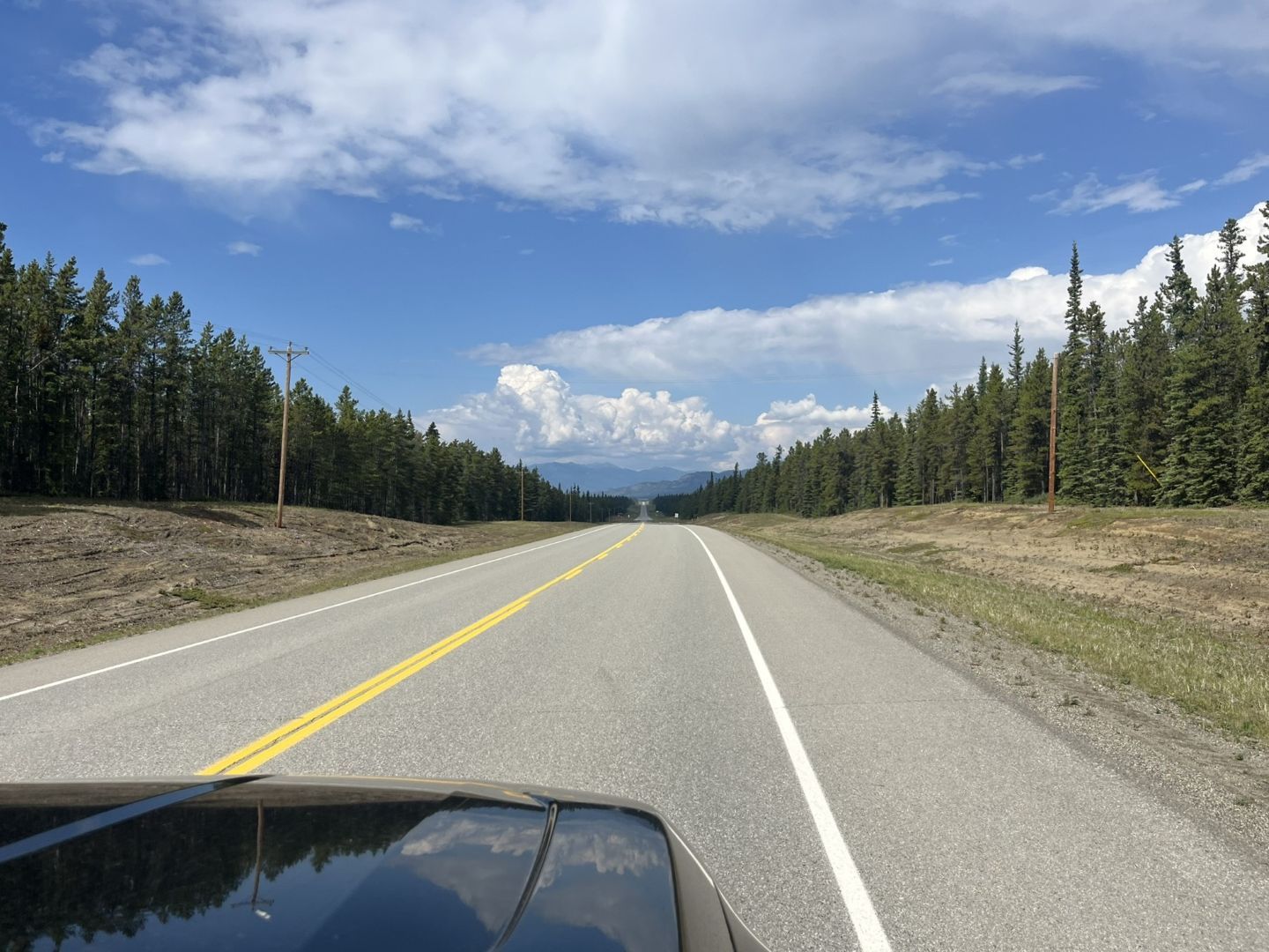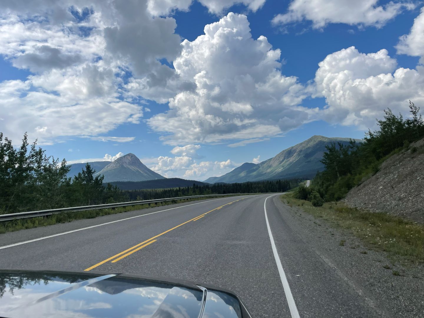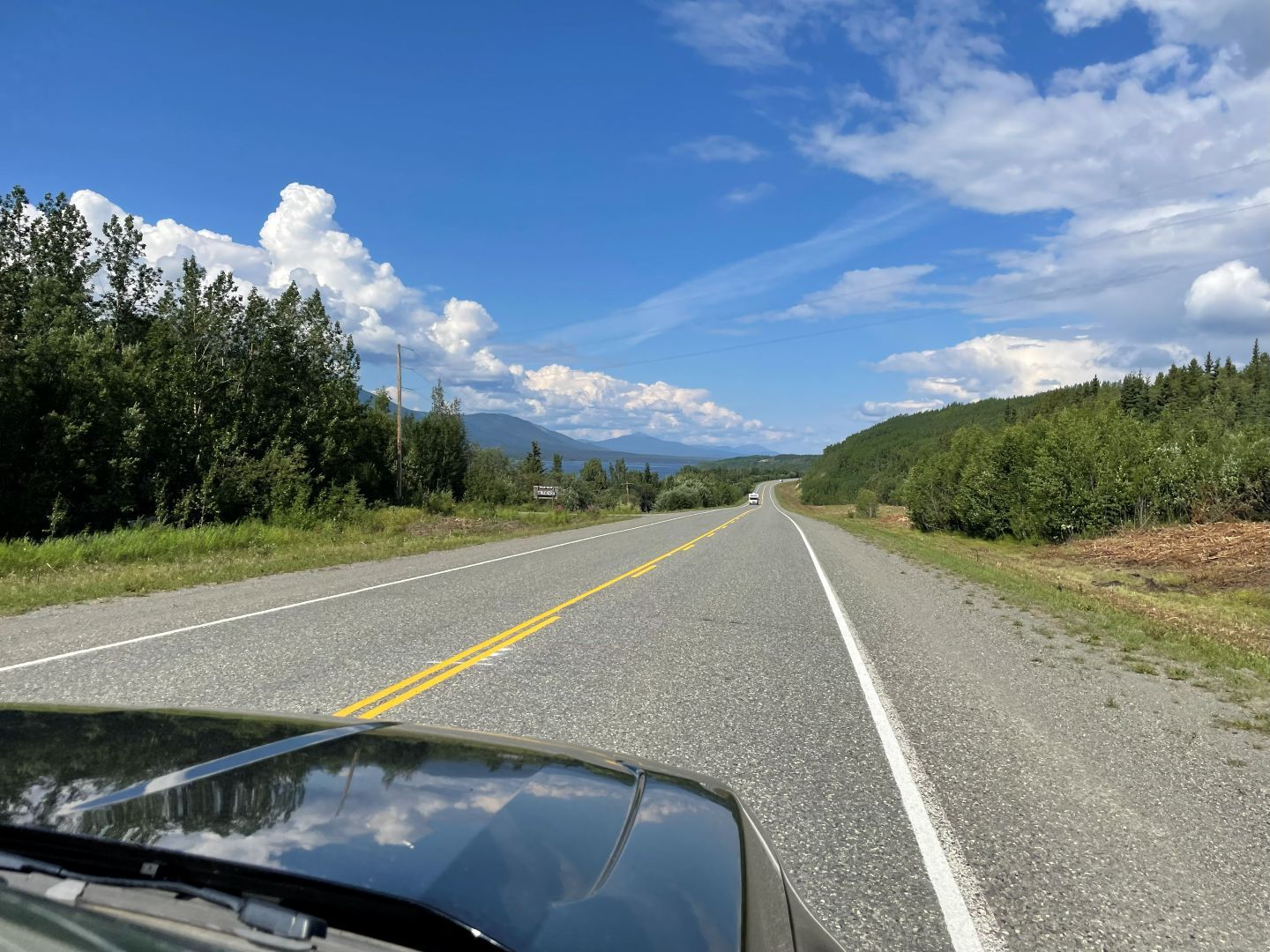 Wir halten nochmal zufällig bei einem Viewpoint. Hier stehen lauter alte Truck-Wracks rum. Die sind aus der Zeit als hier die Canol Road gebaut wurde. Die über 400km lange Schotterpiste führt nach Norden unter anderem ins 226km entfernte Ross River. Hier könnte man wieder auf den Campell Highway abbiegen der auch nach Dawson City führt und eine Alternative zu unserer Route ist. Die Geschichte des Baus wird auf vielen Tafeln erläutert. Die Strecke wurde im 2. Weltkrieg angelegt um die Canol Pipeline instand zu halten. Die Pipeline gibt es längst nicht mehr aber die Strecke wird noch von der Provinz Yukon in Schuss gehalten. Man wird gebeten die Maschinen an der Piste stehen zu lassen🙄 ...offensichtlich steht noch einiges vom Bau da rum.