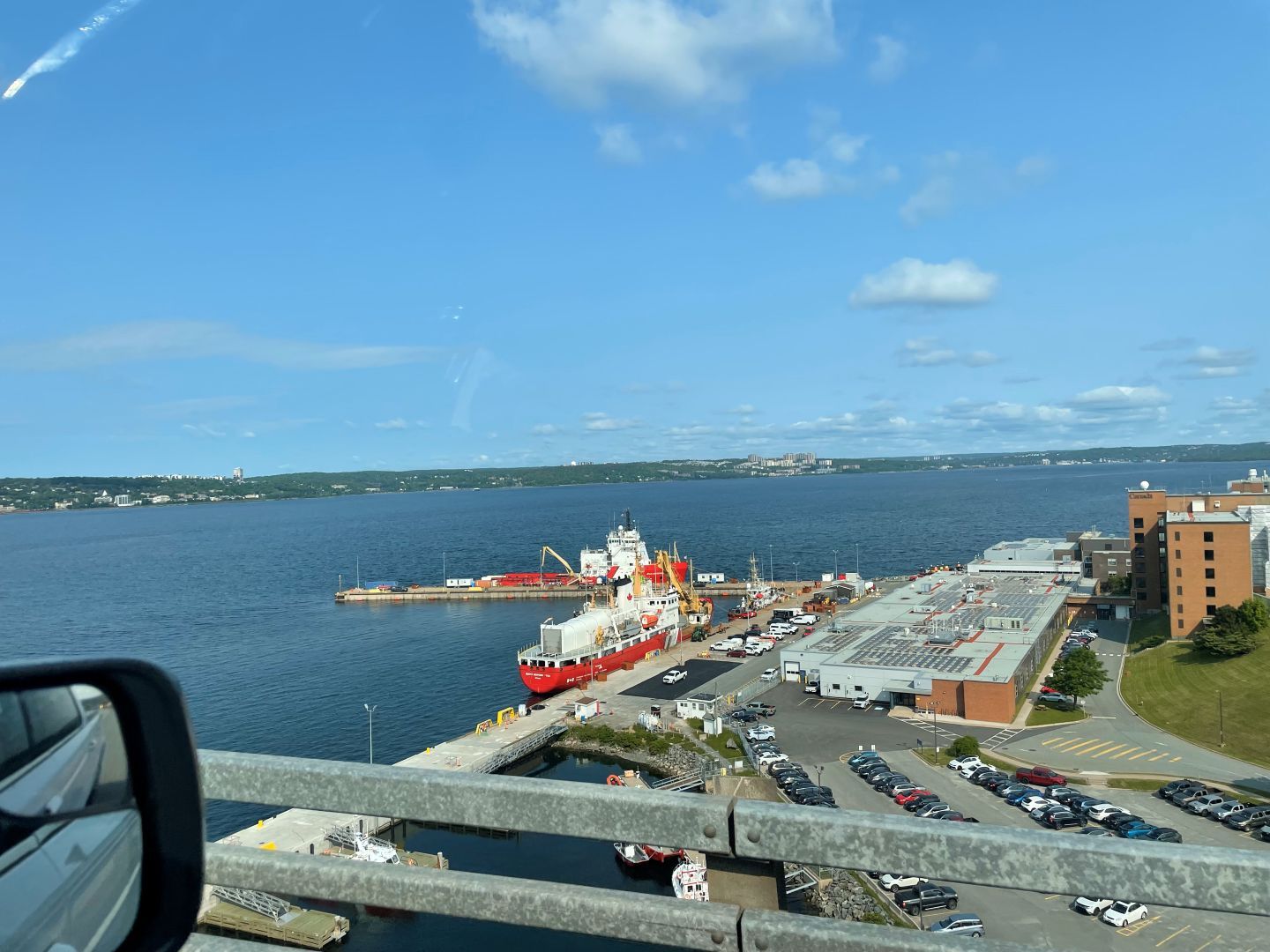 Wir nehmen den Bayer bei uns mit (der kam mit dem Bus) und ab zum Zoll. Mathers ist ganz im Norden von Halifax. Der Zoll ganz im Südwesten und dazwischen der Hafen.