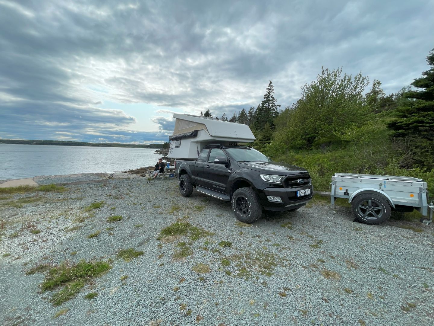 Wir fahren nach ein bisschen nach Norden an der Küste lang bis zum Norse Cove Campground. Ein idyllischer kleiner Camping direkt an der Küste. Der Besitzer kann sogar ein paar Brocken Deutsch. Stammt ursprünglich aus Südafrika und war längere Zeit in Holland und auch in Deutschland. Wir bekommen von ihm noch Zündhölzer (Feuerzeug haben wir natürlich auch vergessen zu kaufen) und irgend ein Wundermittel um die Siegelreste auf Kabine und Reinschi zu entfernen. Klappt gut. Falls ich's noch nicht erwähnt haben sollte ;-) Die Kanadier sind alles sehr freundlich. Es wird z.B. immer freundlich gegrüßt beim vorbei laufen. Aus manchen Ecken Europas kennt man das auch ganz anders (Grüße an den Spanier ;-)).