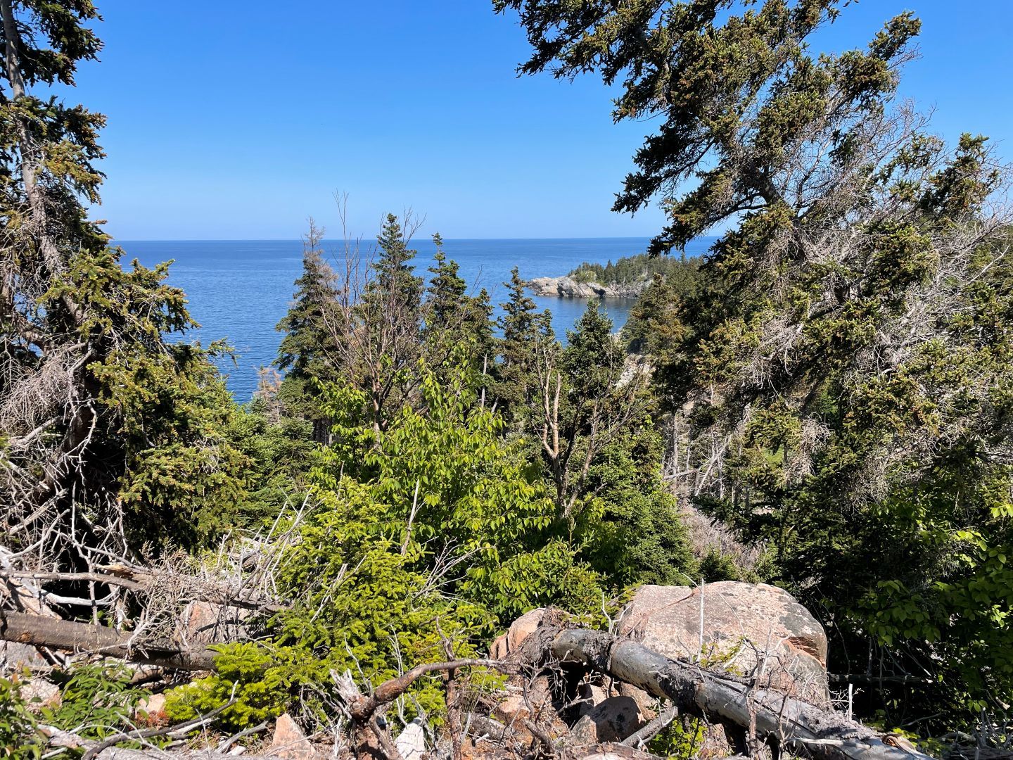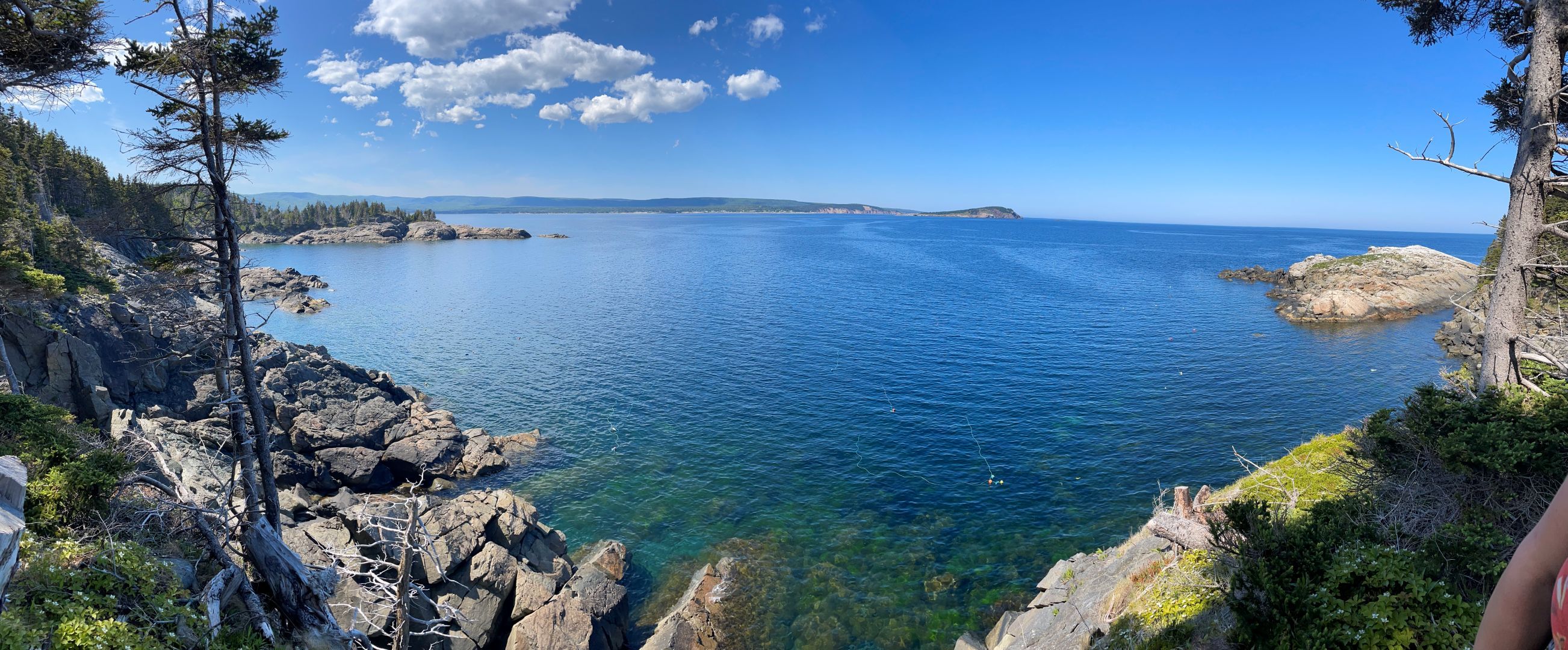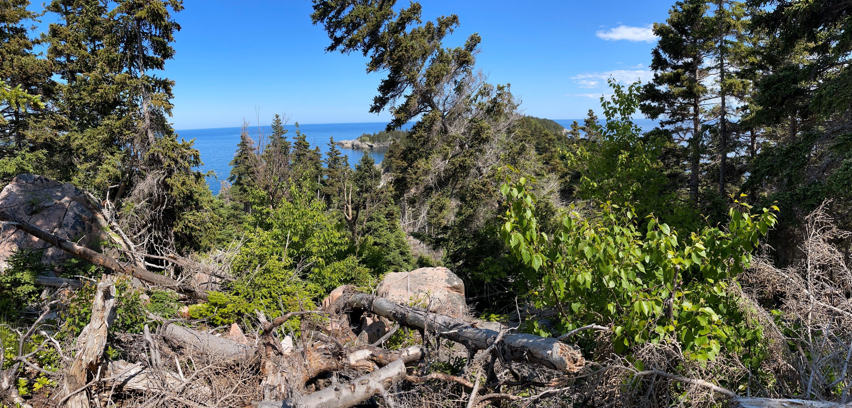 Wir laufen den Middle Head Trail bei Ingonish Beach. Ganz hübsch. Am Beginn des Wegs wird vor Coyoten gewarnt und wie man sich verhalten soll. Klingt fast wie beim Bär. Nie wegrennen sondern langsam zurückweichen. Sich groß und viel Lärm machen (ok beim Bär auf Ihn einreden damit er erkennt das du ein Mensch bist???). Sollte es zu einem Angriff kommen mit Stöcken oder was man sonst hat möglichst die Nase und die Augen ins Visier nehmen.