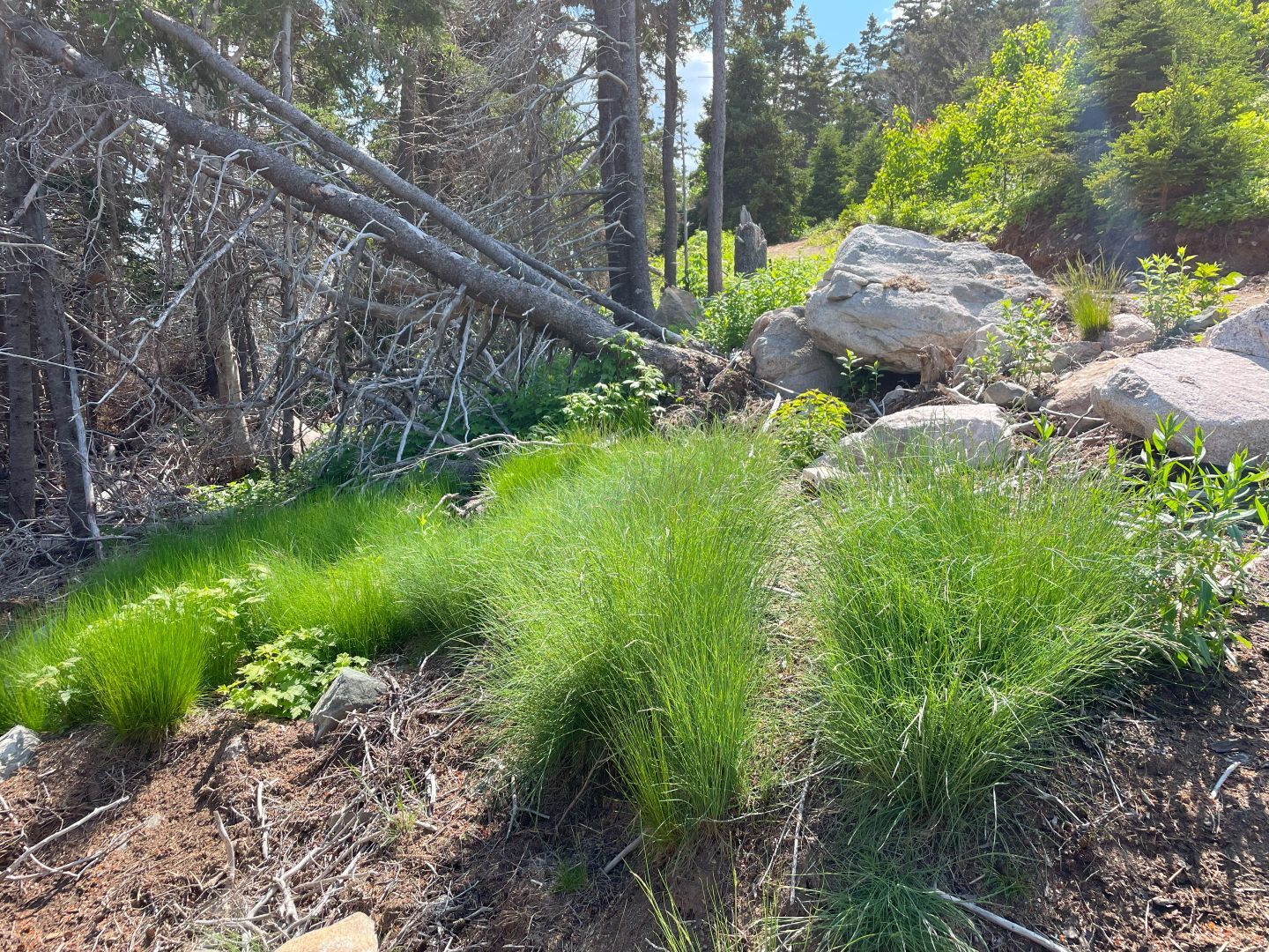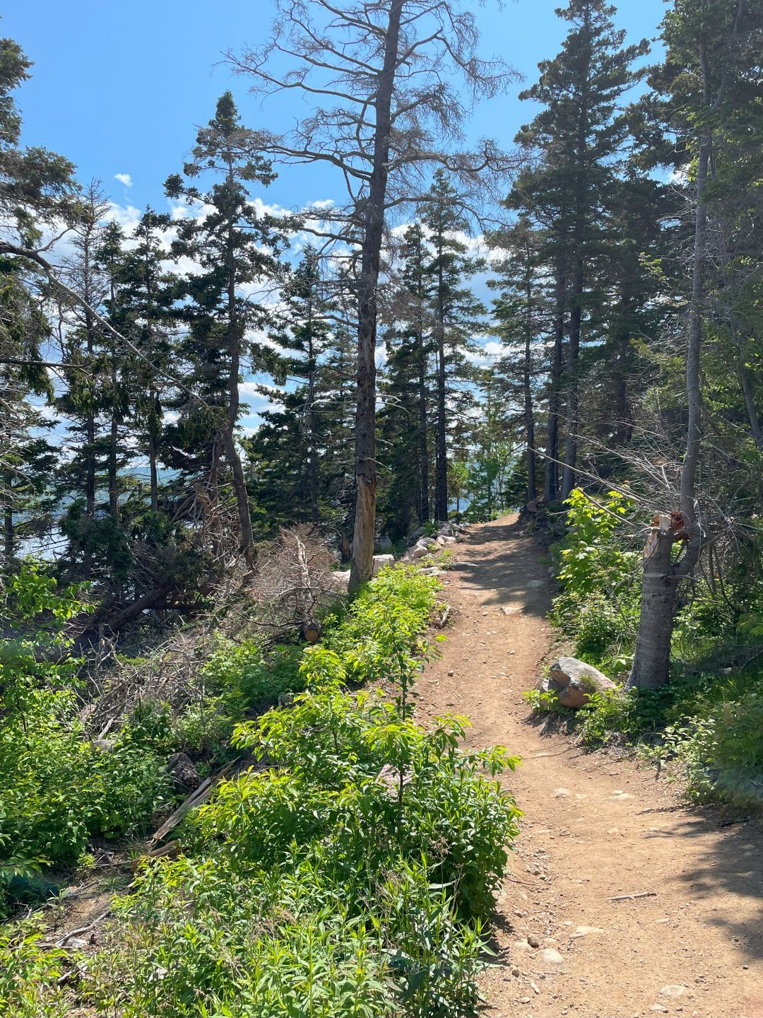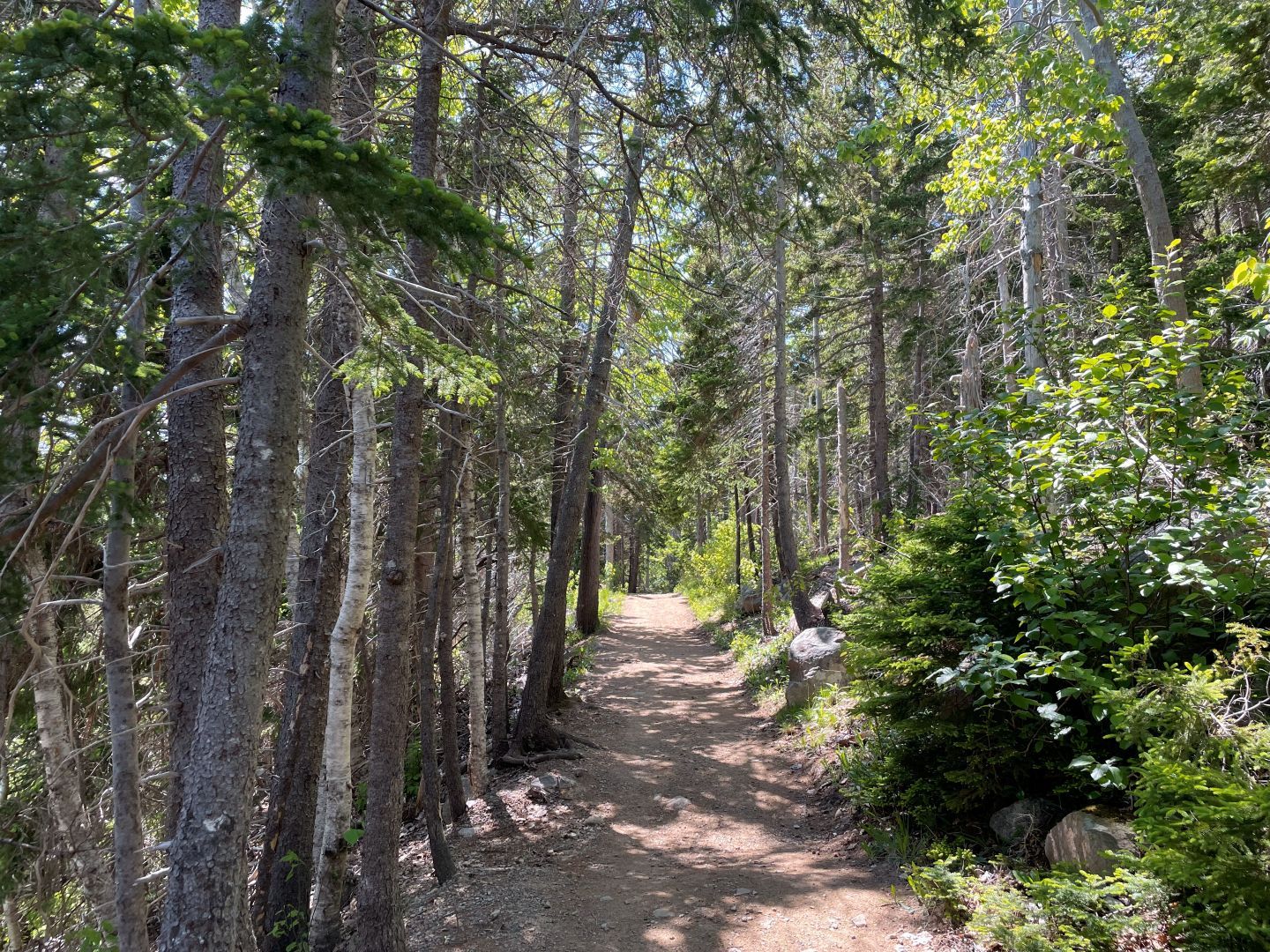 Wir laufen den Middle Head Trail bei Ingonish Beach. Ganz hübsch. Am Beginn des Wegs wird vor Coyoten gewarnt und wie man sich verhalten soll. Klingt fast wie beim Bär. Nie wegrennen sondern langsam zurückweichen. Sich groß und viel Lärm machen (ok beim Bär auf Ihn einreden damit er erkennt das du ein Mensch bist???). Sollte es zu einem Angriff kommen mit Stöcken oder was man sonst hat möglichst die Nase und die Augen ins Visier nehmen.