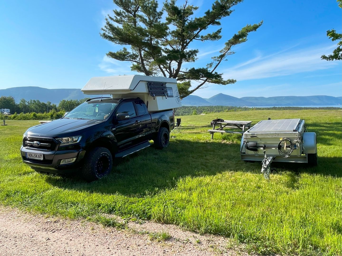 Weiter nach Dinglewood. Dort gibts auch ein schönen Freihstehplatz am Strand wie uns der Amerikaner gestern berichtet hat. Da aber unsere Trockentrenntoilette noch nicht einsatzbereit ist (das Einstreu fehlt noch) fahren wir auf den Hideaway-Campground. der liegt auf einer Anhöhe und man hat eine tolle Aussicht auf Berge, Tal und besagten Strand. Sehr schön.