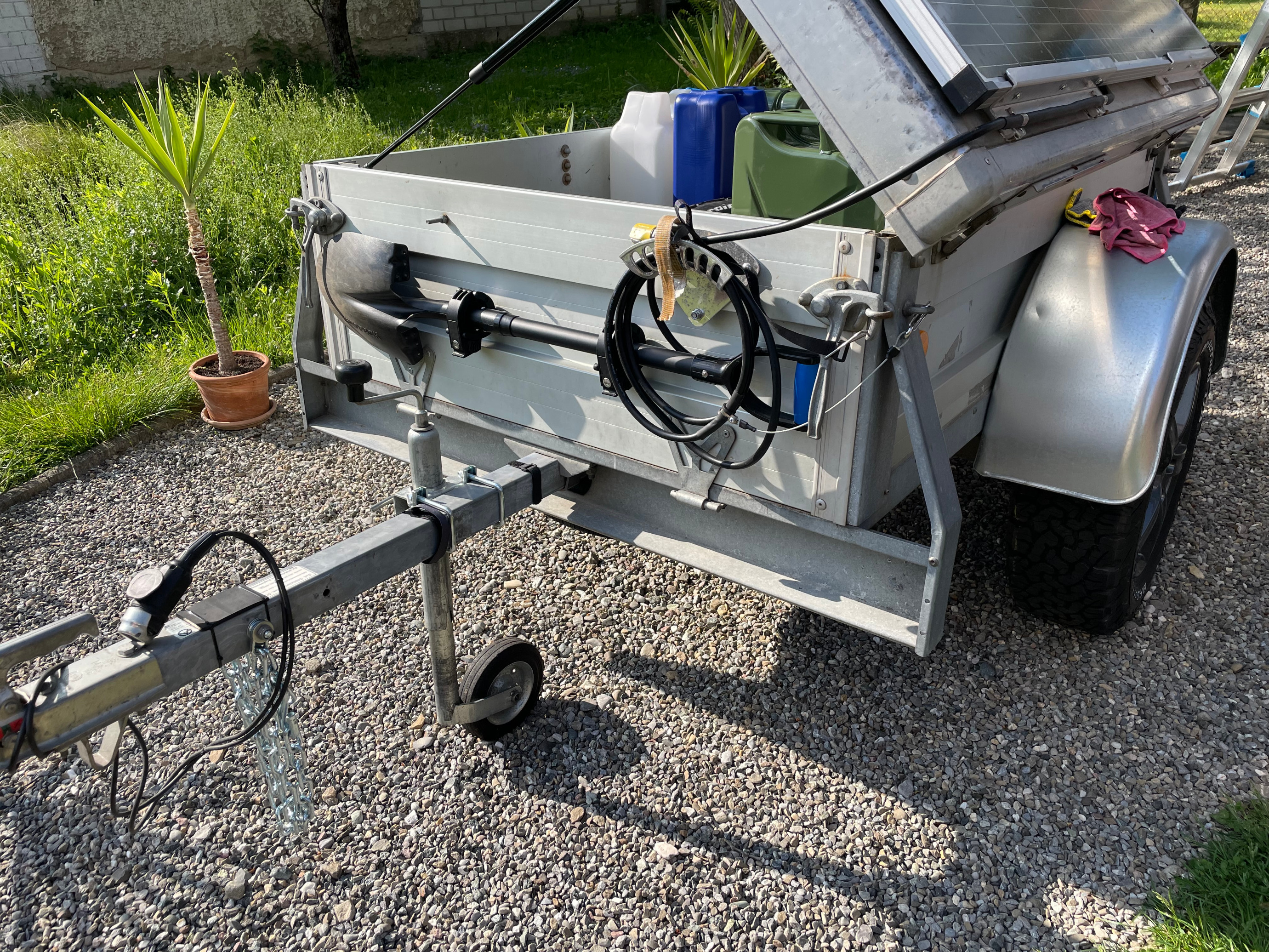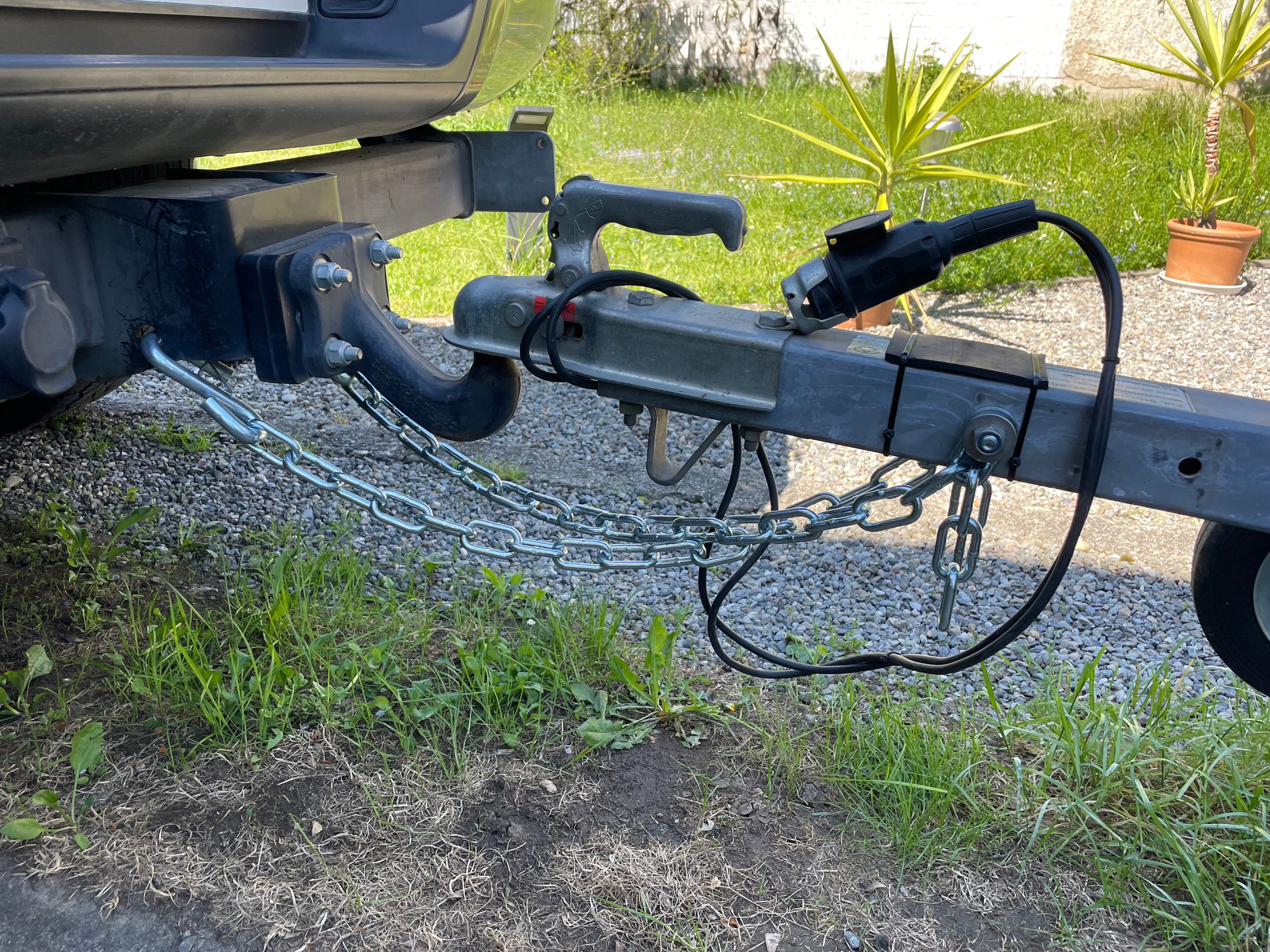 Auch am Anhänger gabs noch ein paar kleine Änderungen. So gab es unteranderm 2 Ketten an die Deichsel. Je nach Bundesstaat in den USA und Kanada sind diese vorgeschrieben. Auch 3 km südlich von uns in der Schweiz bräuchte man sowas (nicht gerade Ketten aber ein Abreisseil zumindest) sonst kanns teuer werden.
