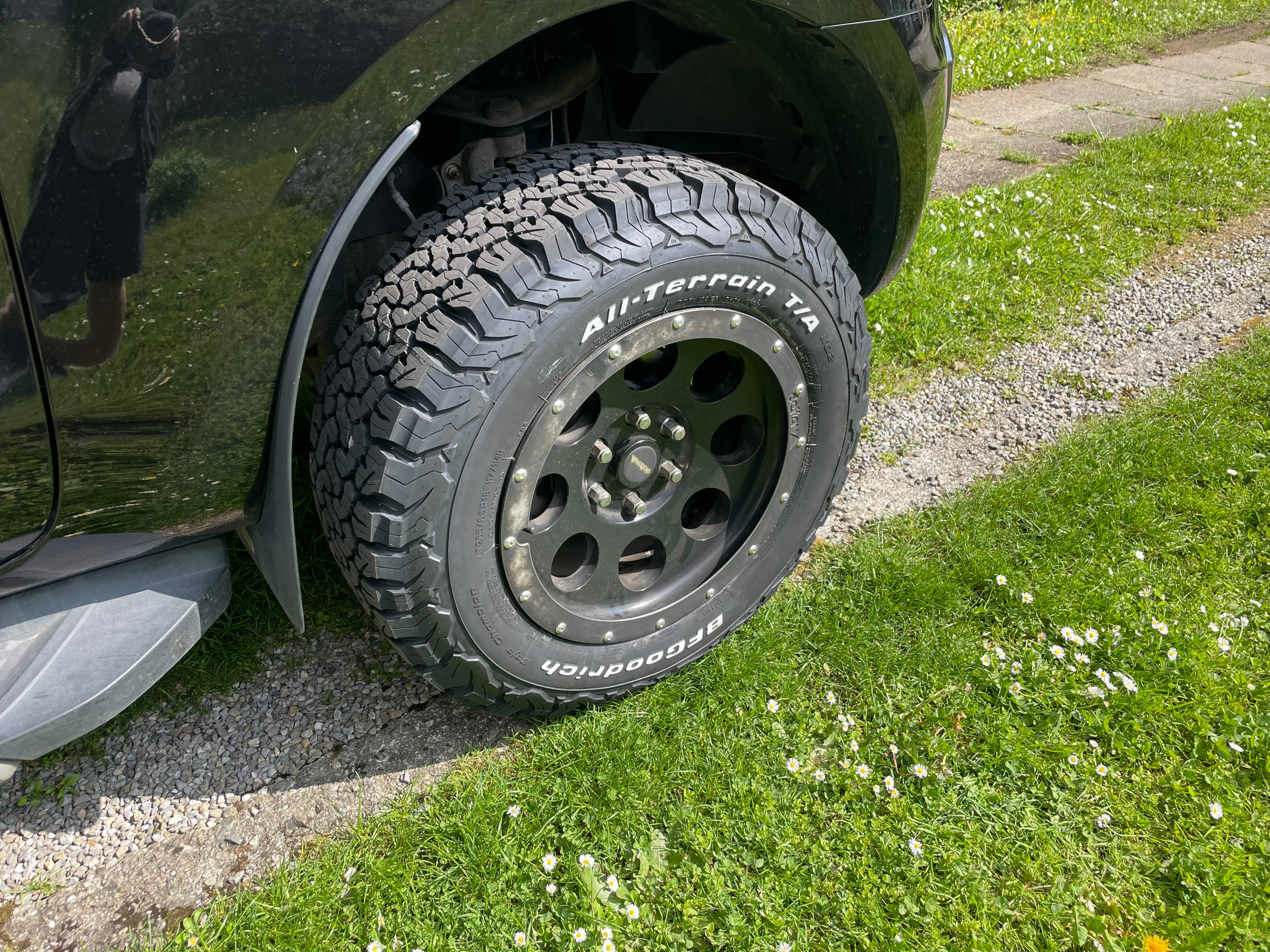 Links der Bf Goodrich KO2, rechts der General Tire Grabber AT3 neben dem damals noch montierten Yokohama Geolander G015.